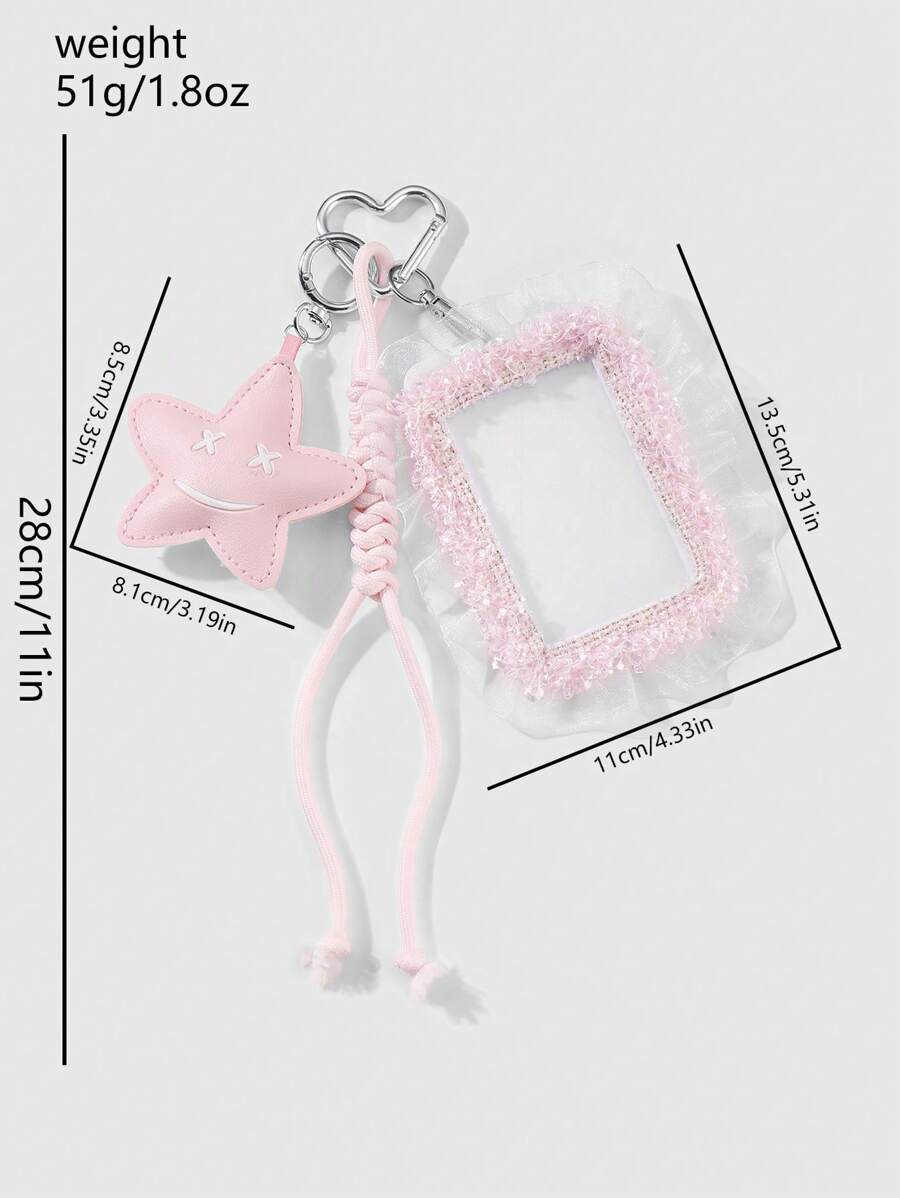 Kawaii قطعة واحدة حاملة بطاقة جلدية منسجة ورباط علوي ليزري وردي فاتح وأنيق، حملة بطاقة هوية متعددة الاستخدامات، دلاية مفاتيح و تميمة حقيبة DIY، مناسب للموظفين والطلاب، هدية مثالية للمناسبات
