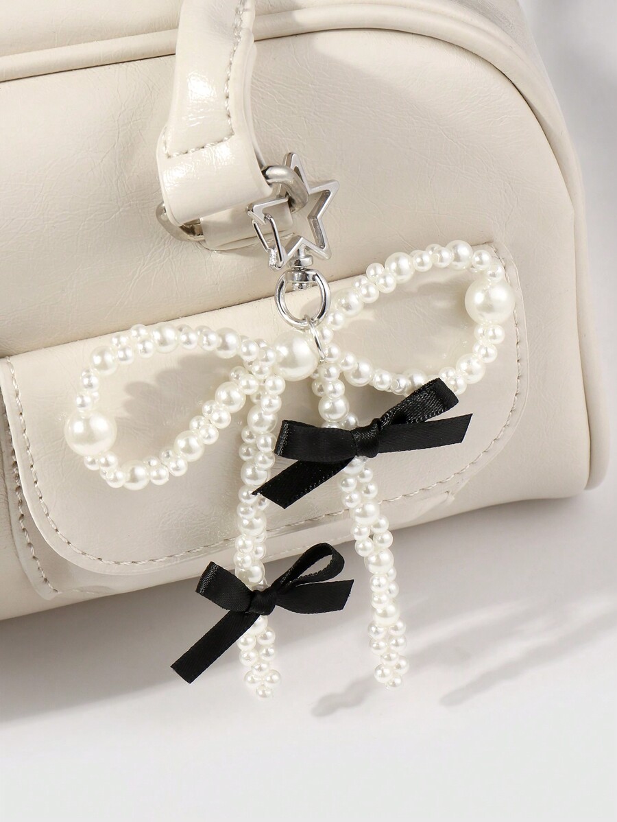 Kawaii 1 قطعة على طراز بسيط متعدد الأغراض تم صنعها يدويًا بريبان وشكل نجمة من اللؤلؤ الصناعي ، قلادة أو تعليقة الحقيبة، مناسبة للنساء والفتيات، للاستخدام اليومي أو كهدية في عيد الحب