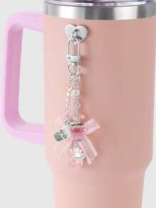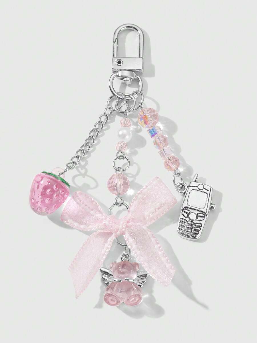 Kawaii 1 قطعة سلسلة مفاتيح قلب فضي فارغ بشكل أنيق مع عقدة الفراشة وردي شفاف وقلادة دب محشوة بخرز اصطناعي للنساء والفتيات، للاستخدام اليومي أو كهدية