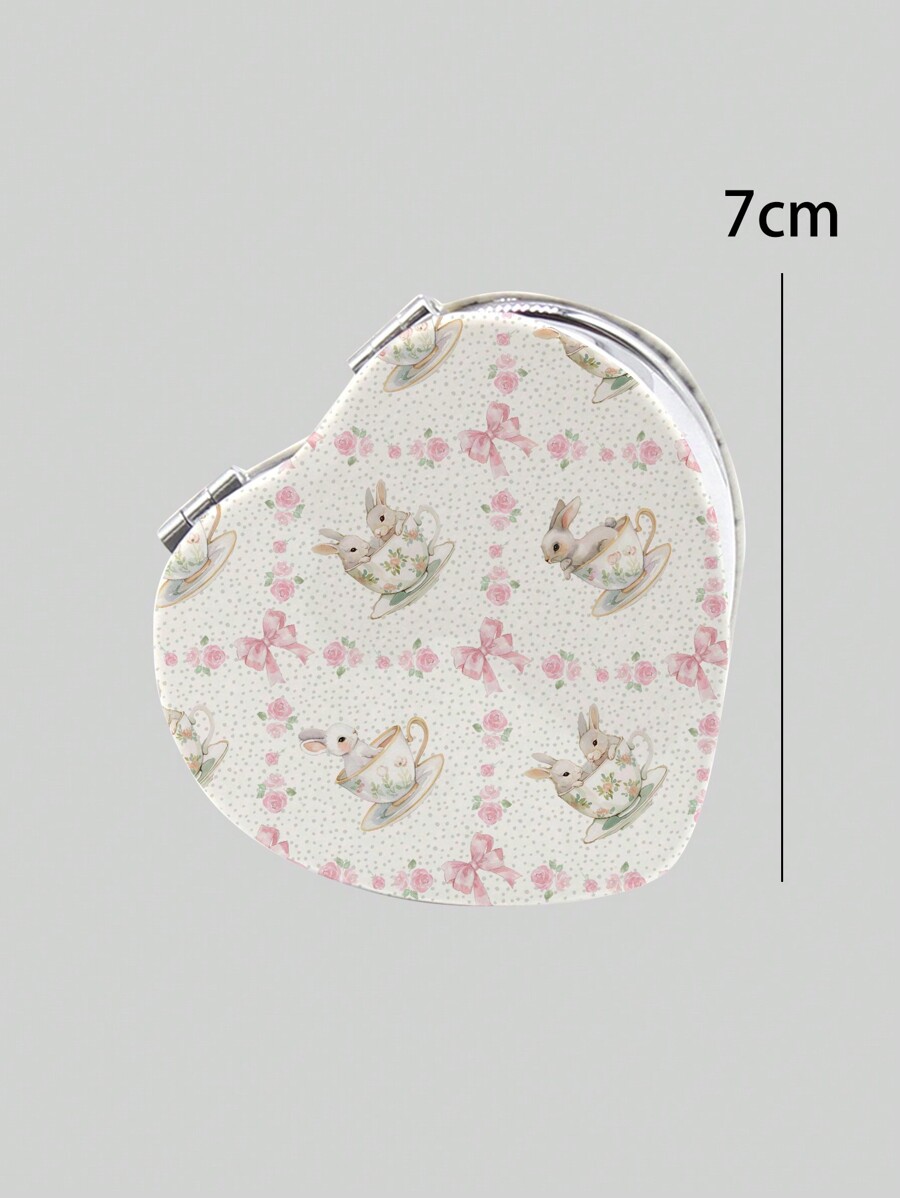 Kawaii مرآة تجميل بنمط ارنب على شكل قلب من البولي يوريثان قطعة واحدة ، مرآة يدوية محمولة للبنات (موضع النمط عشوائي)