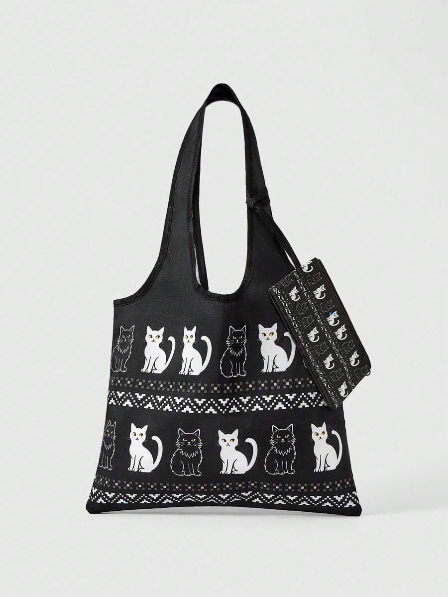 Kawaii حقيبة تسوق مع محفظة صغيرة، مناسبة للطلاب الجامعيين/التسوق/السفر