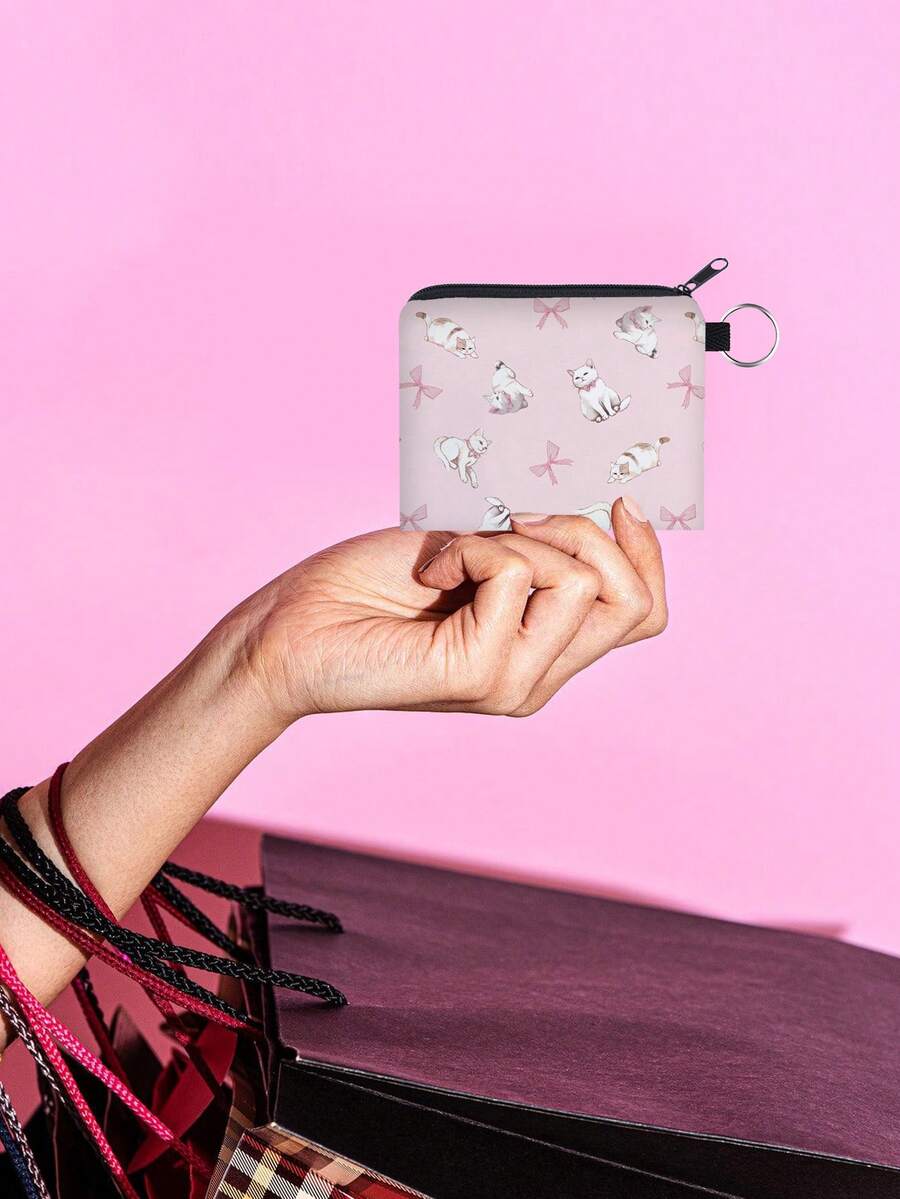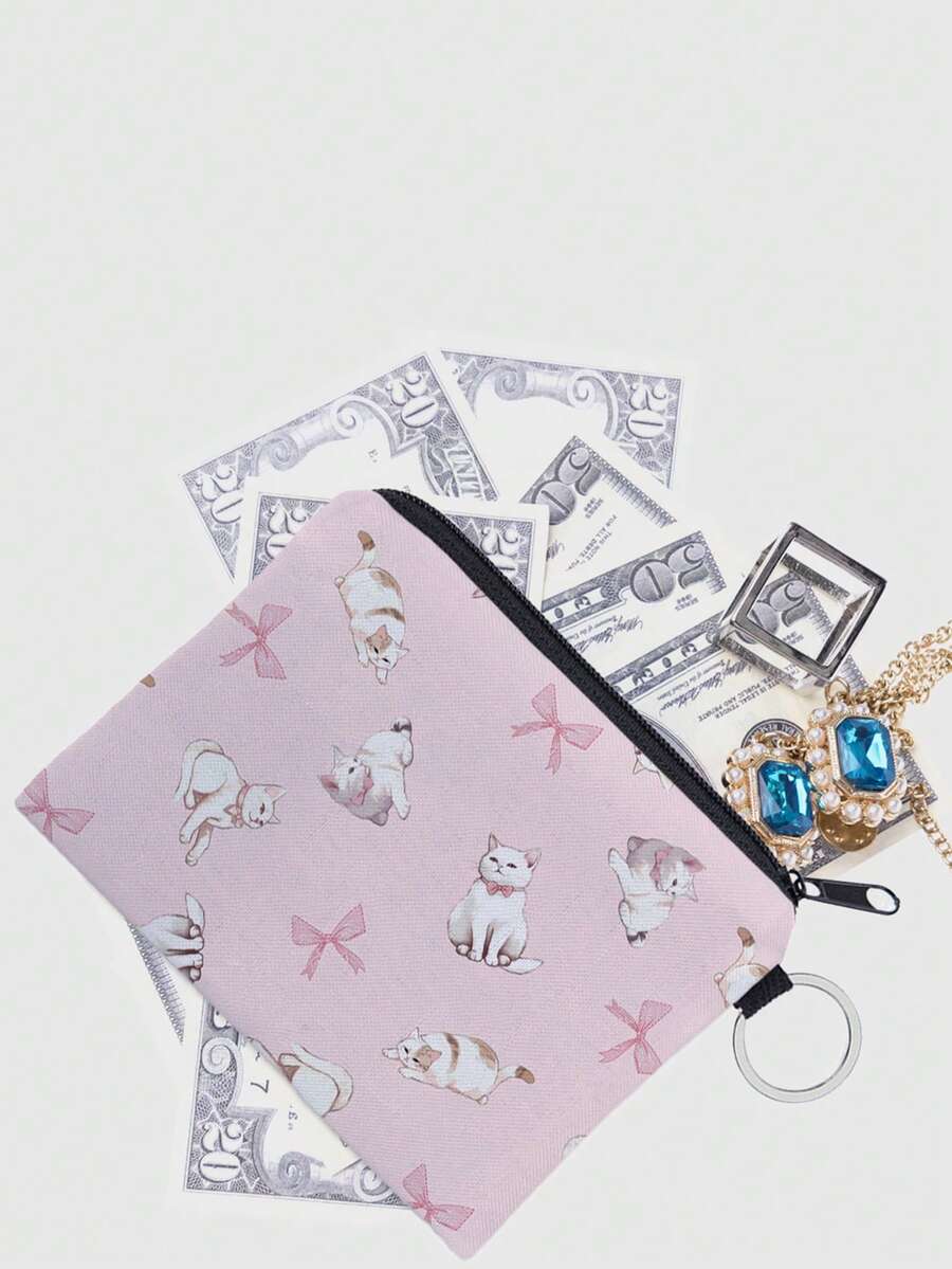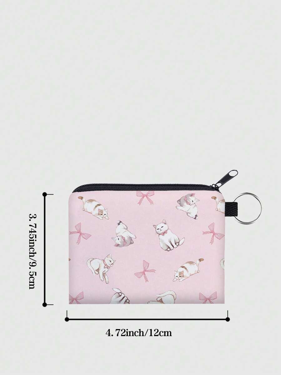Kawaii محفظة عملات معدنية بجرافيك قط رسوم كارتون قطعة واحدة نساء