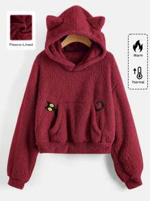 Kawaii قطعة واحدة سترة كاجوال بأكمام طويلة وجيب من الفرو، للارتداء اليومي للنساء