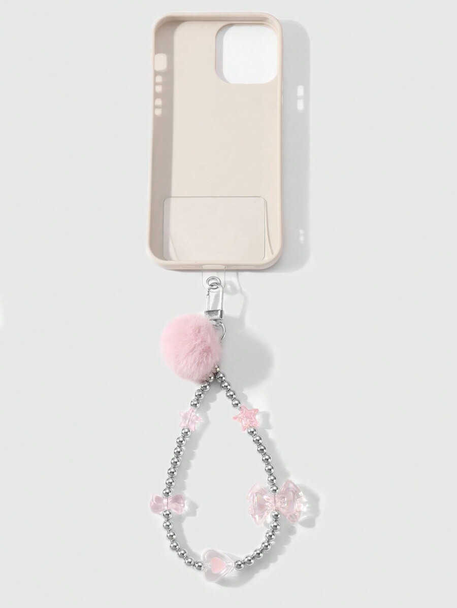 Kawaii 1 قطعة من سلسلة الهاتف أو سلسلة المفاتيح أو جاذب للحقيبة بتصميم عصري من اللؤلؤ والراتنج على شكل نجمة وقوس وكرة كشمير، مناسب للنساء/البنات، هدية لارتداء اليومي أو للمناسبات