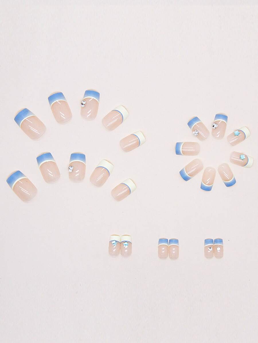 Kawaii 24 قطعة مربع ثلاثي الأبعاد مزخرف بنجم أظافر اصطناعية و ورقة واحدة شريط