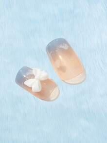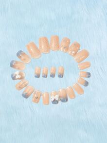 Kawaii أظافر اصطناعية مربع نمط سحابة شريط الأظافر 1صفحة وملف الأظافر 1قطعة 24 قطعة