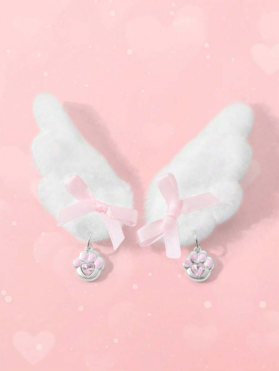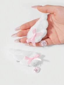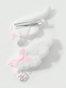 Kawaii قطعتان جميلة تصميم أجنحة ملاك, فيونكة وردية, فصوص الماس, قلب وتصميم مخلب القط, كليبسات شعر متعددة الاستخدامات وأنيقة, مناسبة للنساء والفتيات, مثالية للارتداء اليومي وكهدايا للمناسبات