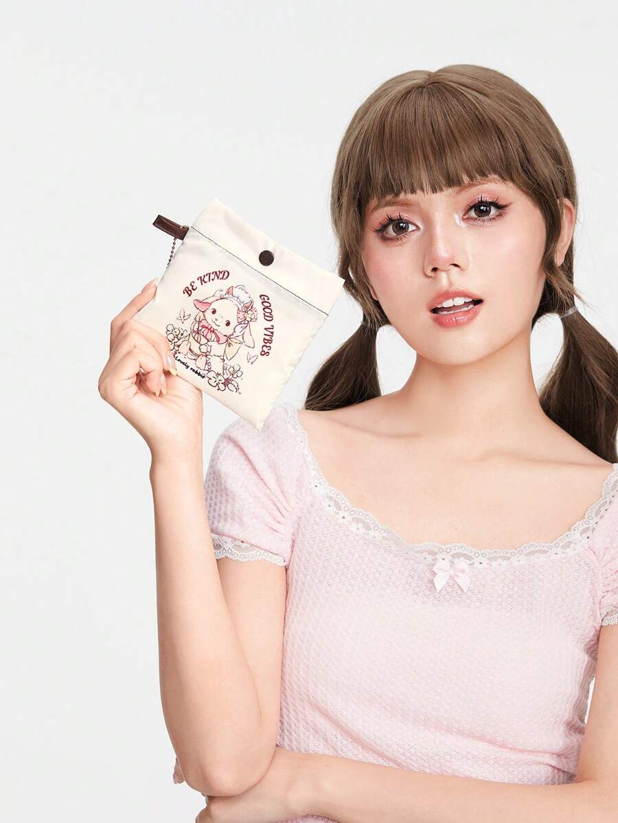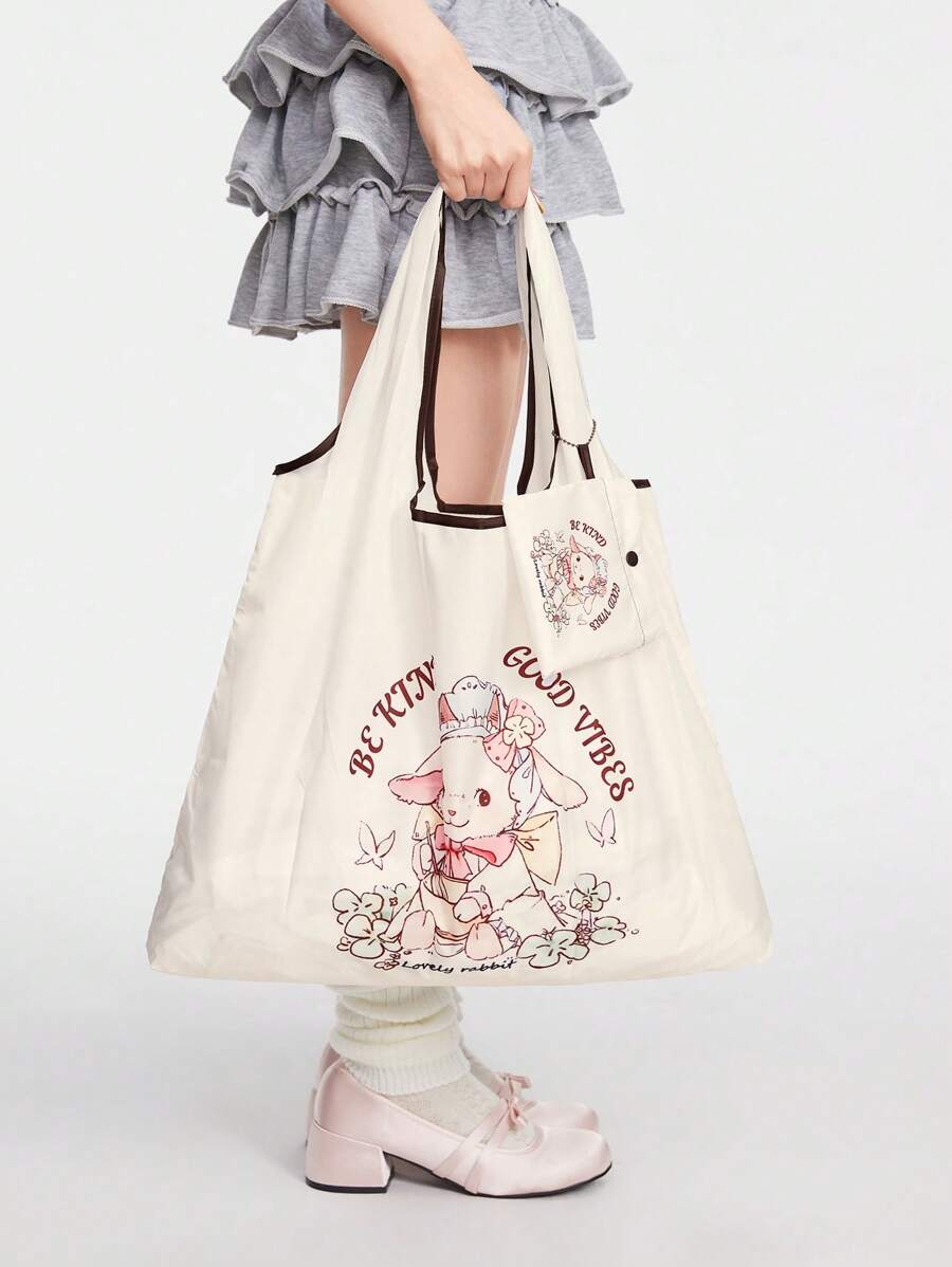 Kawaii 2 حقيبة تخزين بتصميم خروف كرتوني بسعة كبيرة وقابلة للطي، تشمل محفظة نقود 230931