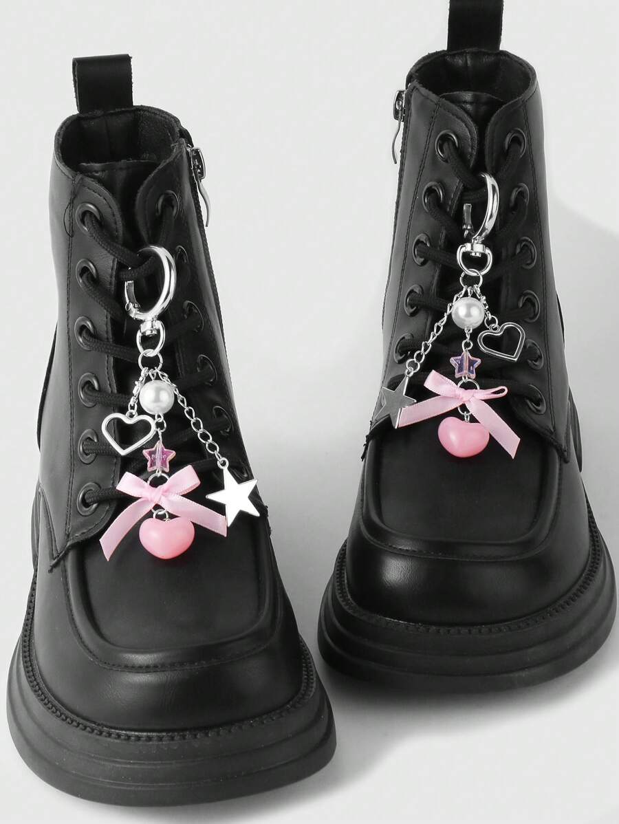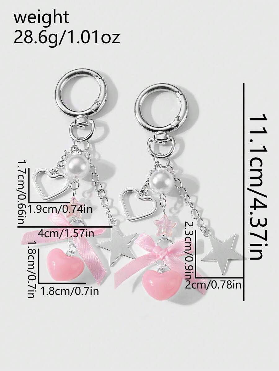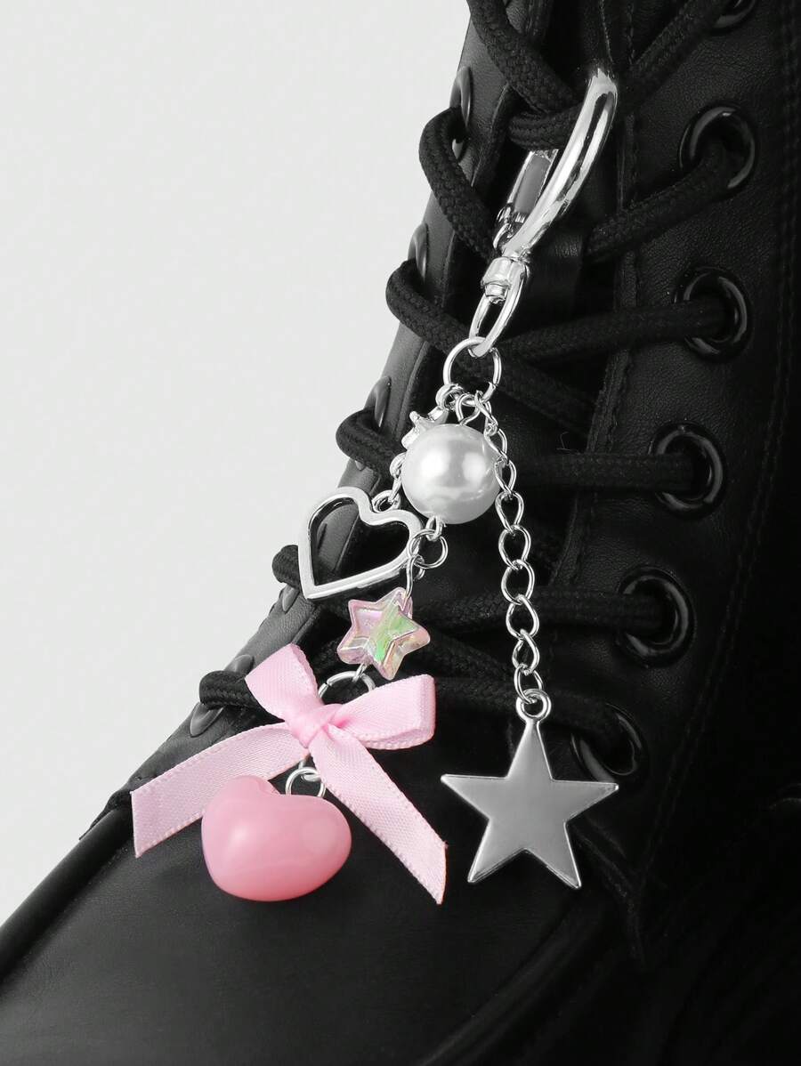 Kawaii 2 قطعة قلادة بسلسلة فضية بتصميم نجمي أنيق ومميز، مزينة بفيونكة وخرز اللؤلؤ، اكسسوار متعدد الاستخدامات للأحذية والملابس، مناسب للفتيات والنساء لاستخدامه يومياً أو كهدية للمناسبات