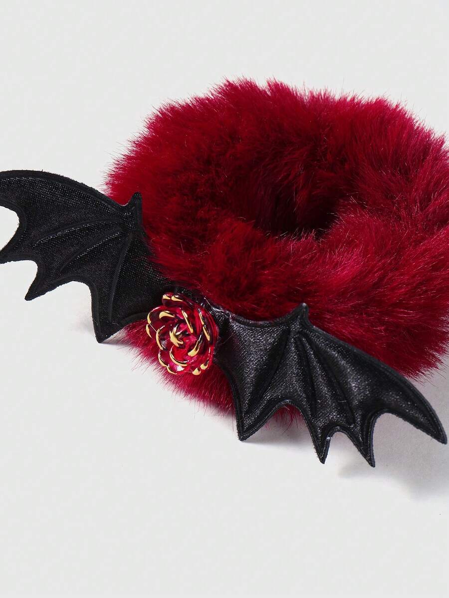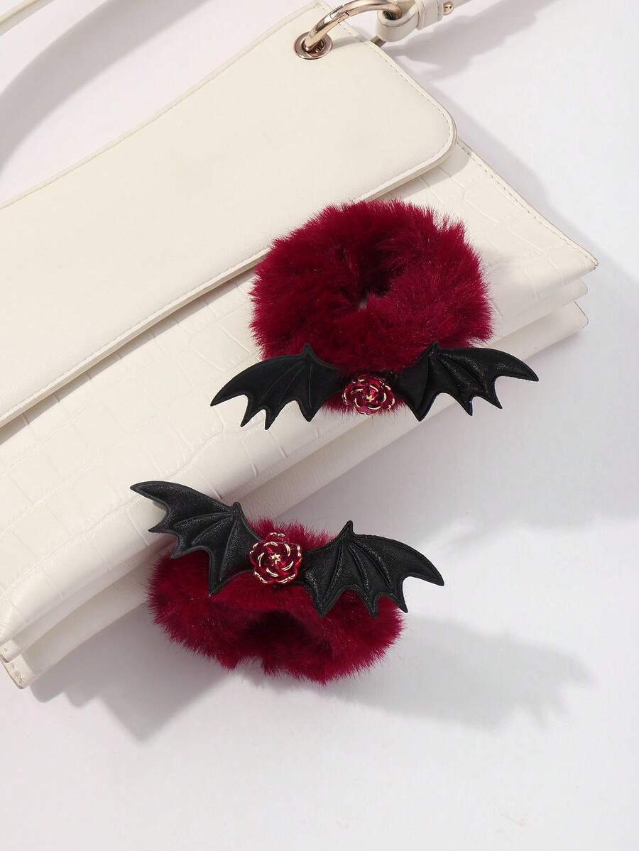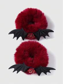 Kawaii مجموعة كعكة شعر زهرية فرائية بطراز جوثي 2 قطعة، بتصميم أجنحة الخفاش باللون الأحمر الداكن والأسود، أنيق وعصري، مناسب للأخوات والصديقات والبنات لاستخدام يومي وكهدية في المناسبات