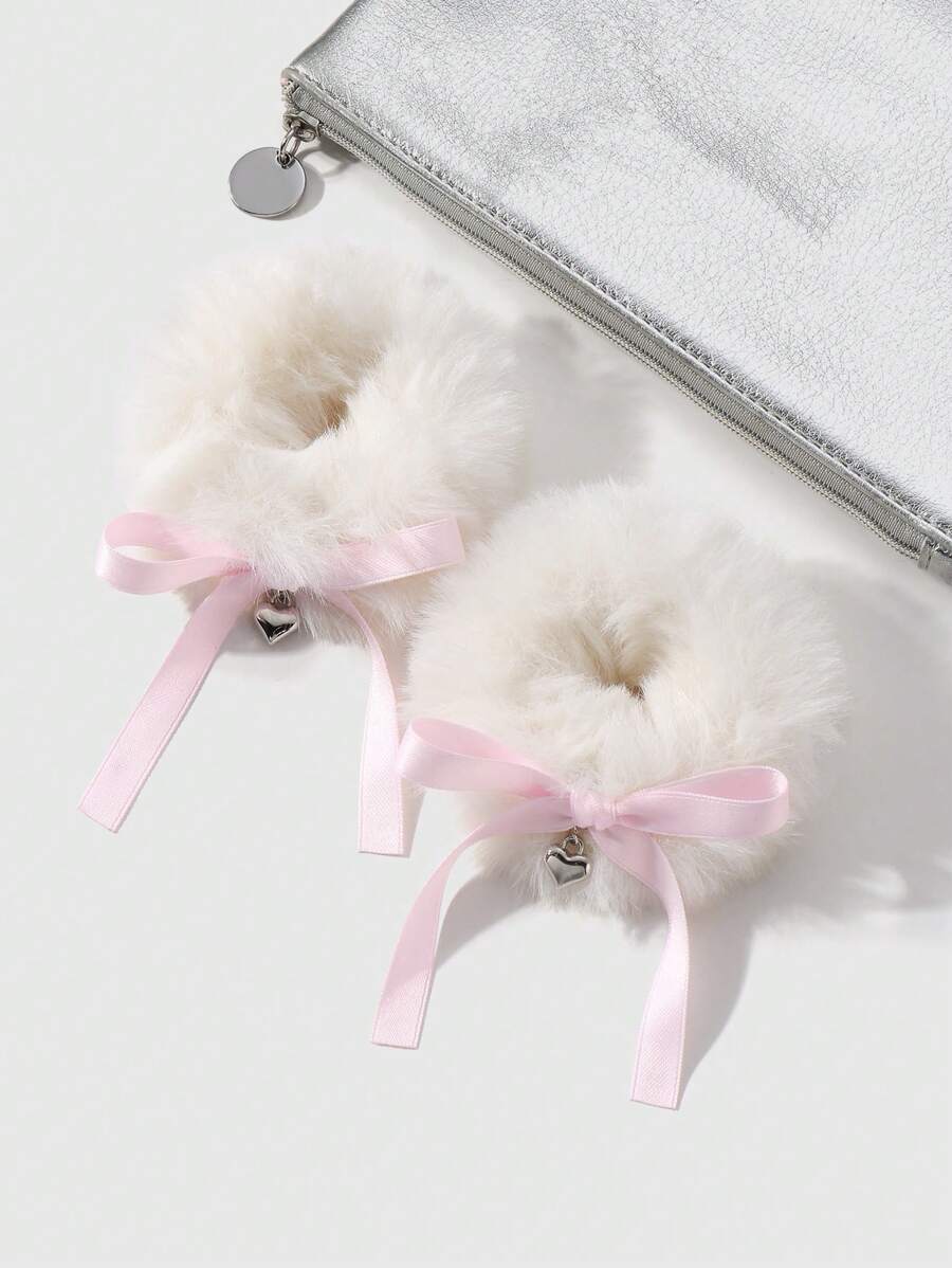 Kawaii مجموعة من 2 قطعة حلقات شعر بيضاء فضفاضة وتصميم بسيط وأنيق وشامل مع شرائط وفرفرة وقلب من CCB، مناسبة للنساء والفتيات لارتدائها يوميًا أو كهدية في المناسبات