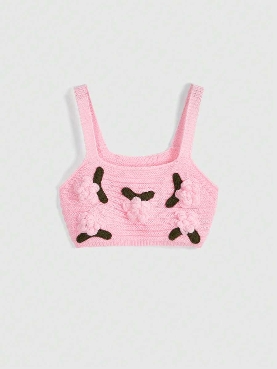 Kawaii 2 قطعة من مجموعة الكنزة و الكاردجان المحبوك بنمط الورود للنساء