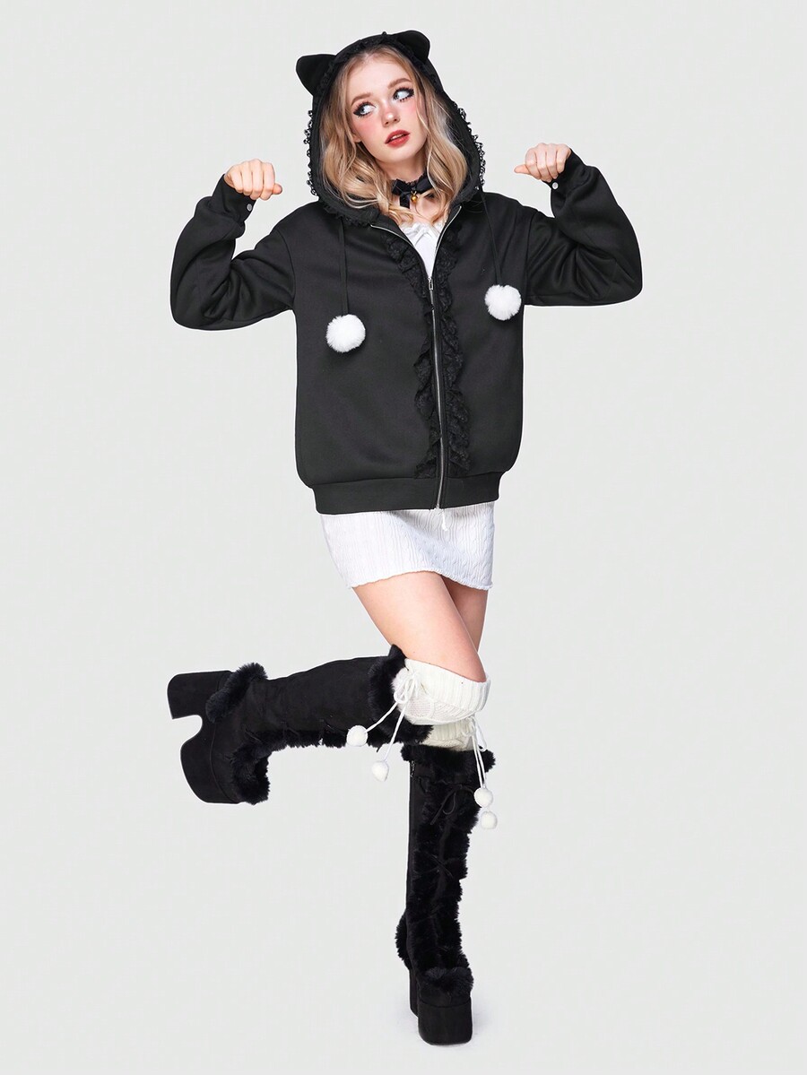 Kawaii هودي تصميم أذن ثلاثي الأبعاد سستة رباط