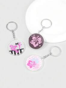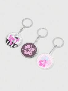 Kawaii 3 قطع سلسلة مفاتيح بشعار الملاحظة الموسيقية والزهرة