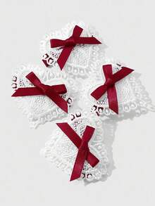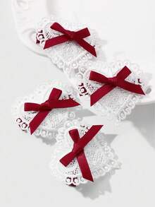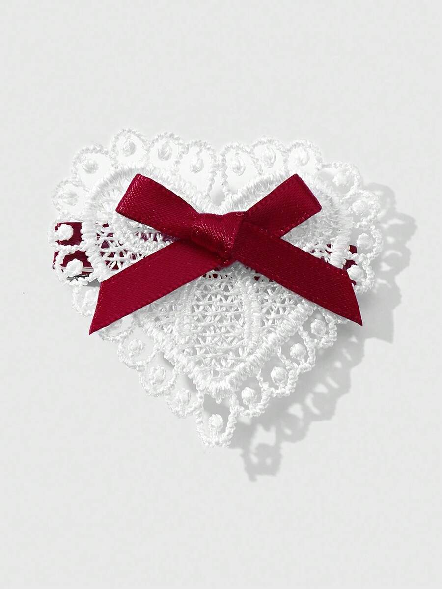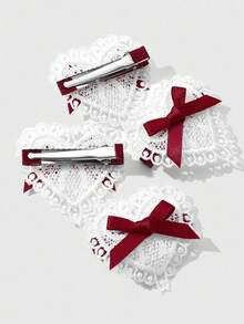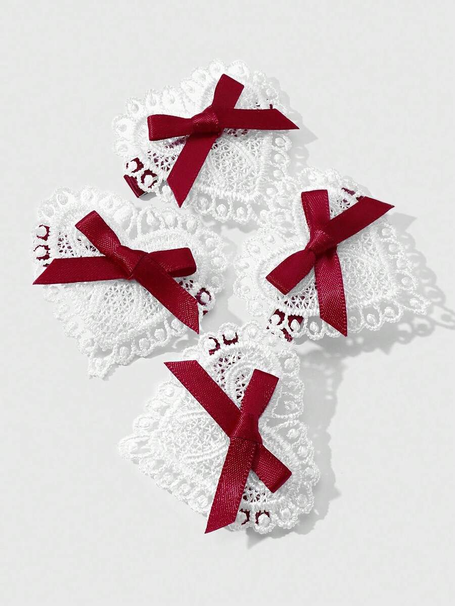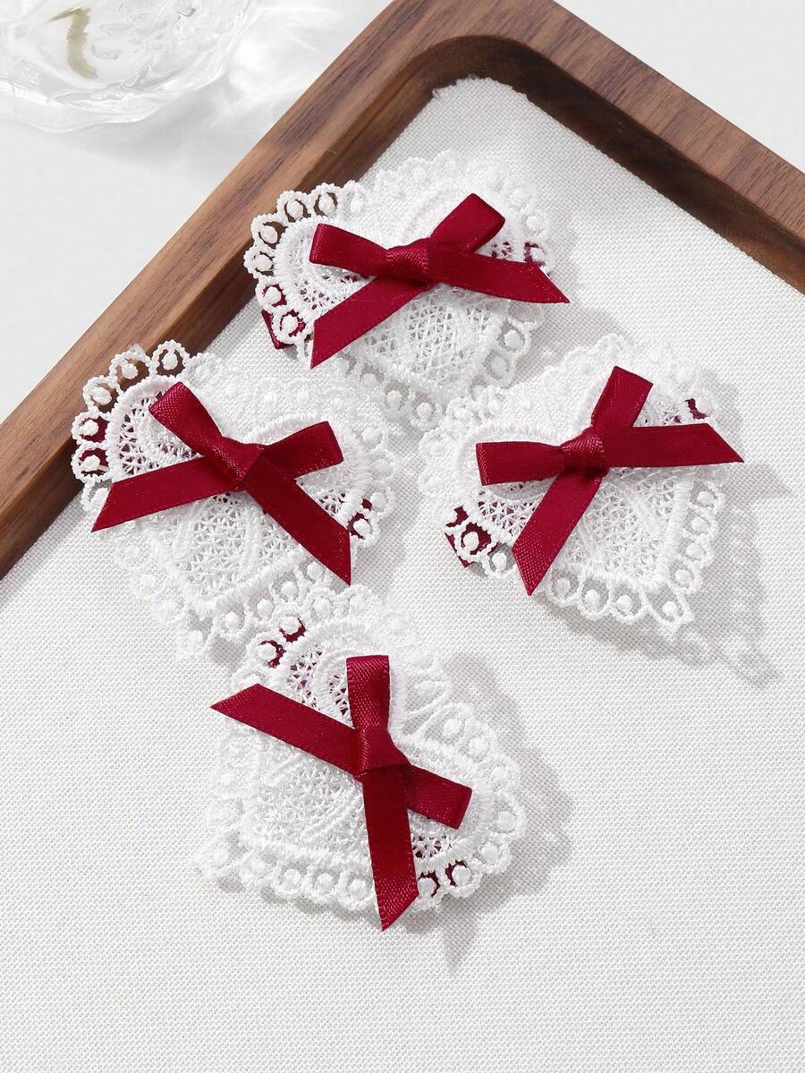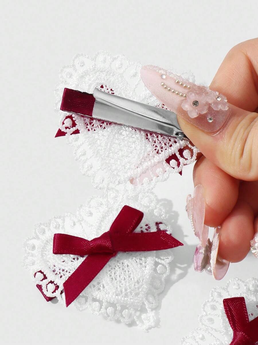 Kawaii 4 قطع شريط أحمر أنيق عتيق عالي الجودة، مشابك شعر قلب أبيض مفرغ مجموعة مشابك الشعر للذيل والغرة، مناسبة للنساء والفتيات للاستخدام اليومي وكهدايا المناسبات