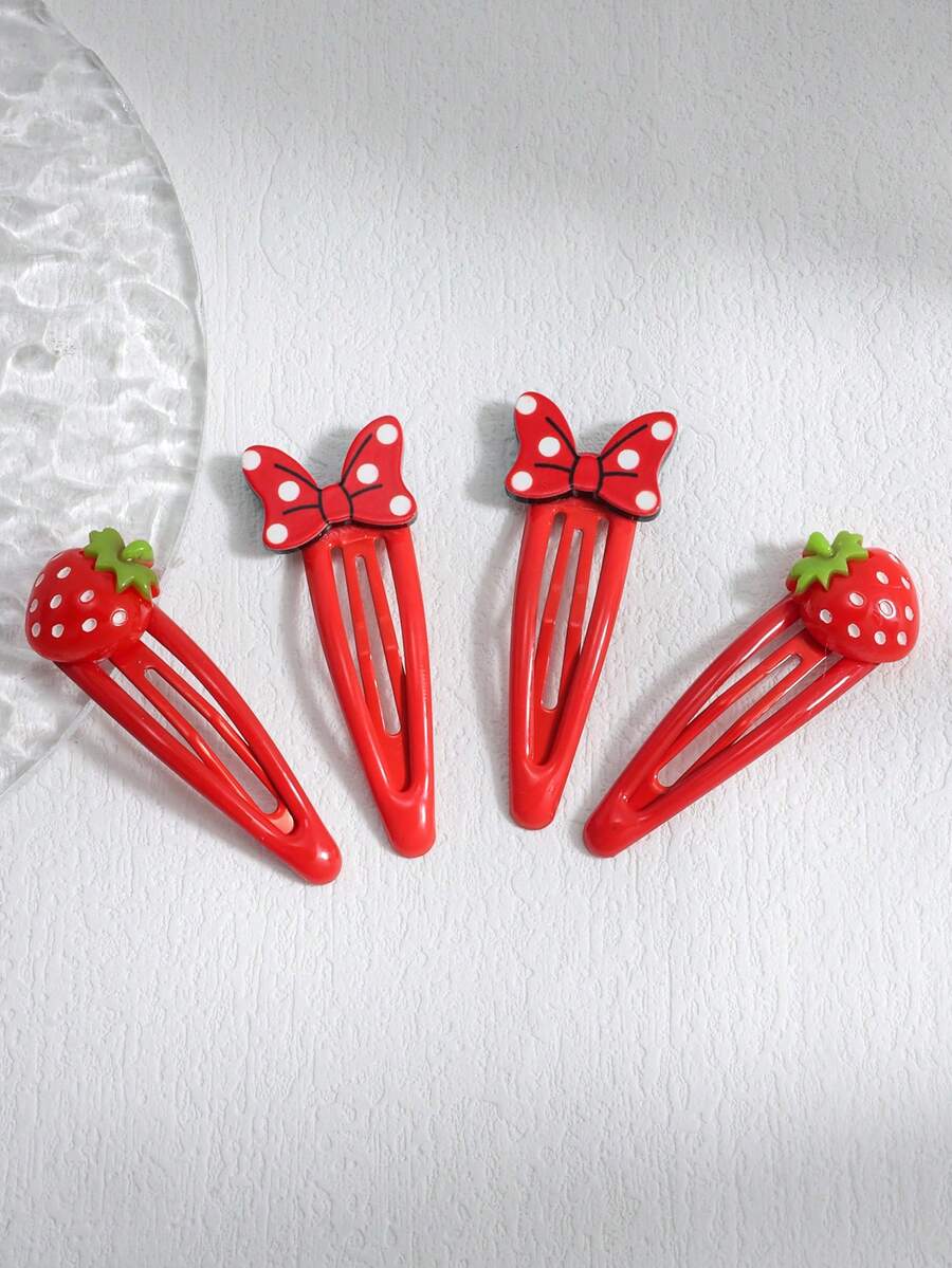 Kawaii 4 قطع كليبسات شعر فراشة فراولة حمراء بطراز Y2K للنساء، إكسسوارات العودة إلى المدرسة