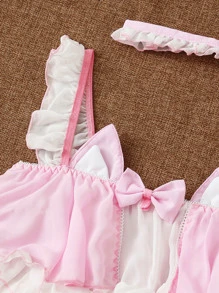 Kawaii طقم سكسي متوسط مكشكش طبقات 5 قطع