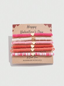 Kawaii مجموعة 6 قطع أساور مكونة من خرز وأشكال قلب وردي رومانسي، هدية مثالية لعيد الحب للسيدات