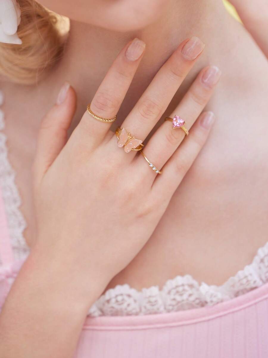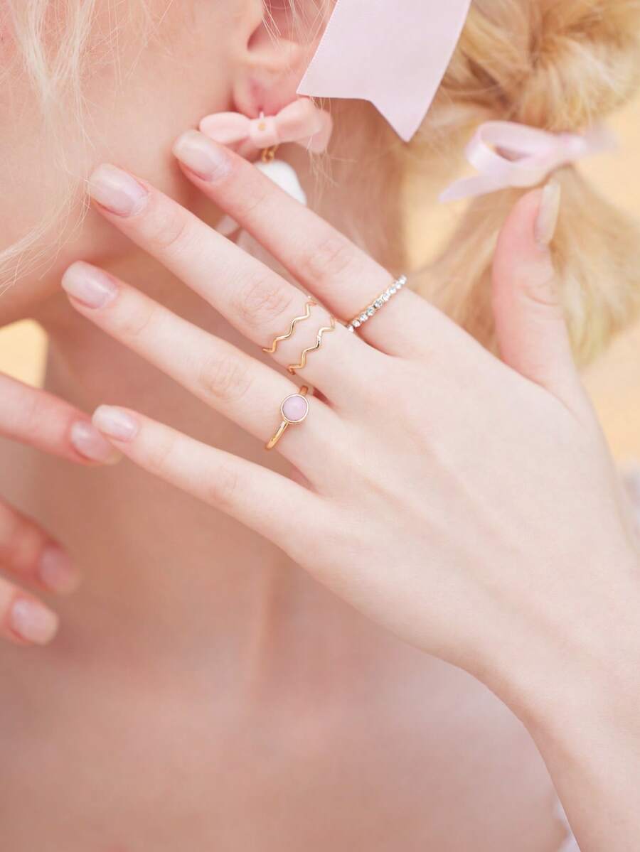 Kawaii خاتم بديكور حجر الراين 8 قطع