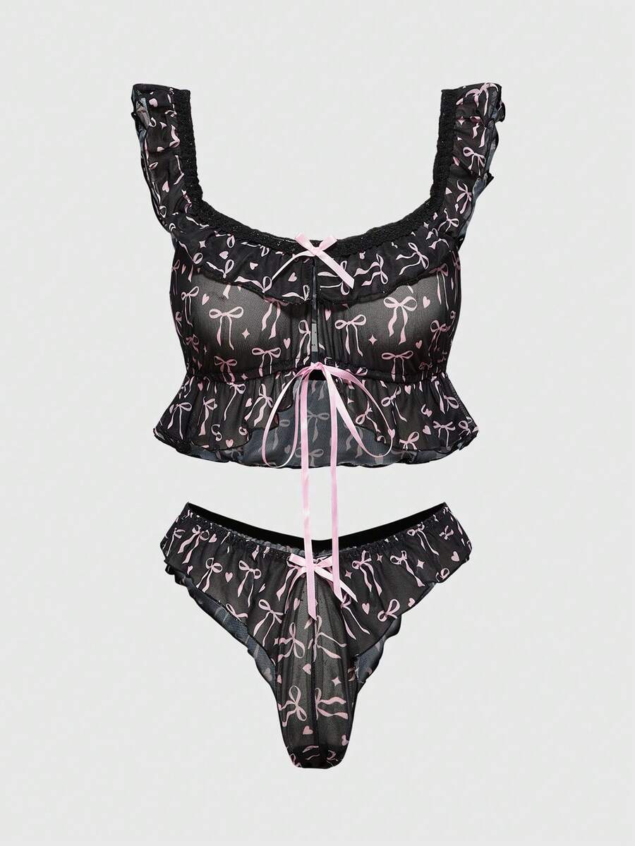 Kawaii طقم ملابس داخلية جذابة للنساء بتصميم ربطة الفراشة