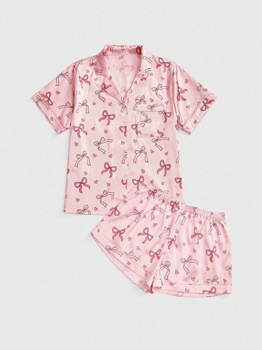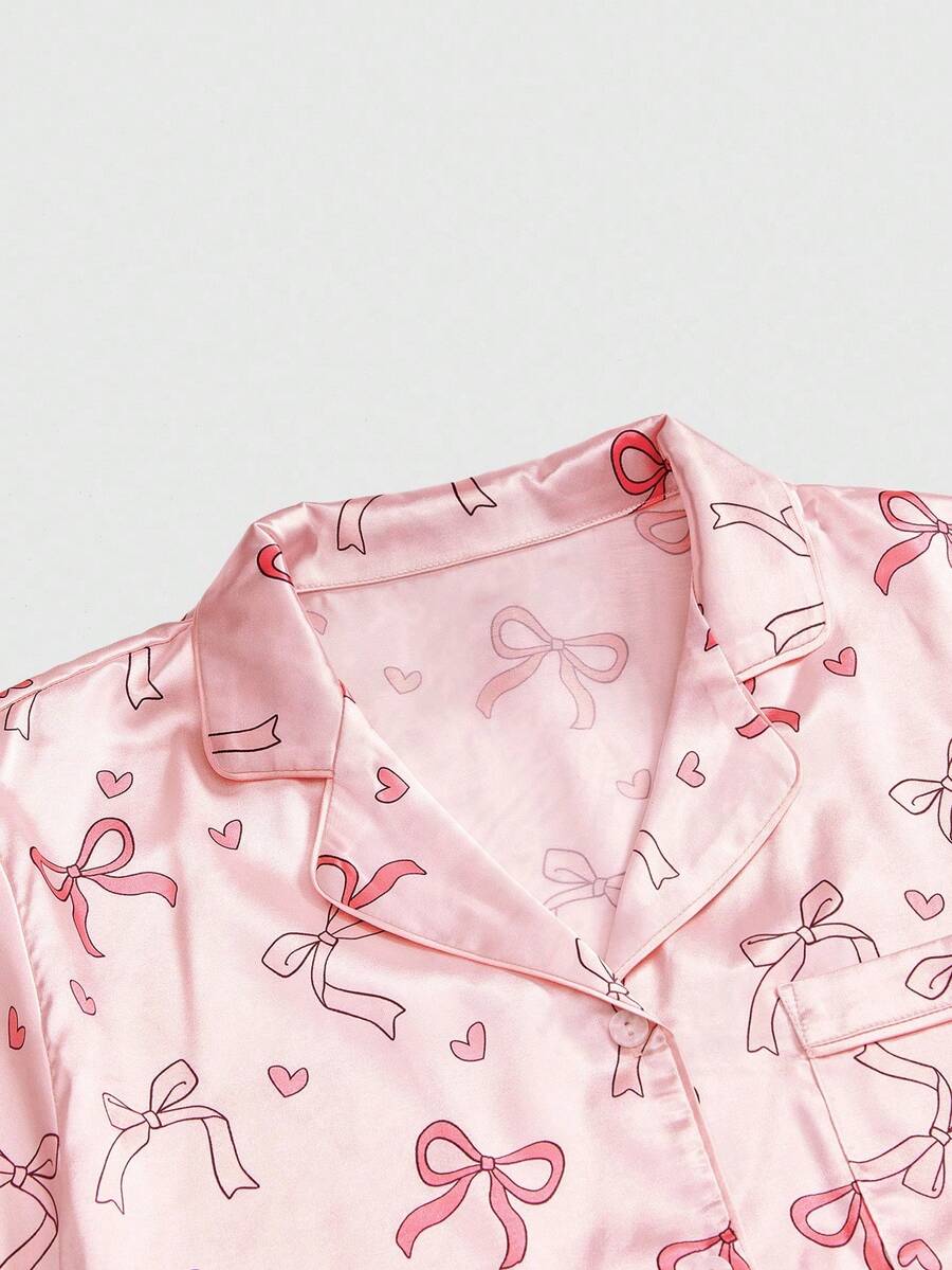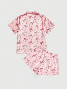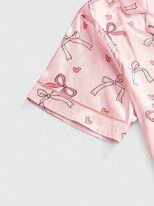 Kawaii طقم بيجامة نسائي حريري مطبوع بأربطة ساتان حلوة للأطفال الرضع