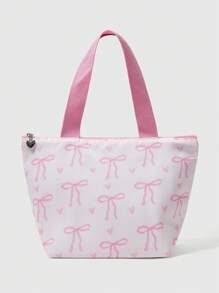 Kawaii حقيبة غداء معزولة كبيرة السعة محمولة أنيقة وجذابة مطبوعة عليها عقدة الفراشة