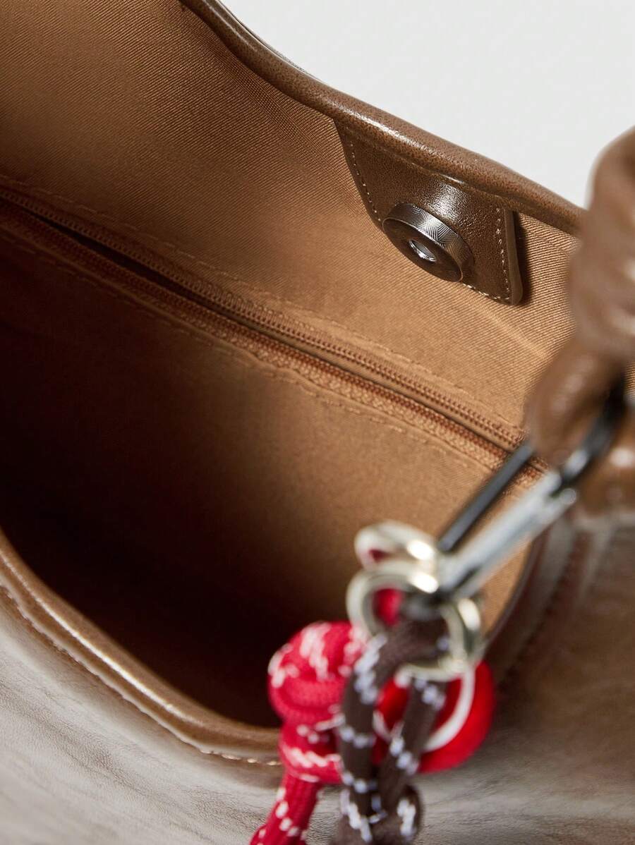 Kawaii حقيبة كاجوال ساسل بحبال بنية اللون، متعددة الاستخدامات