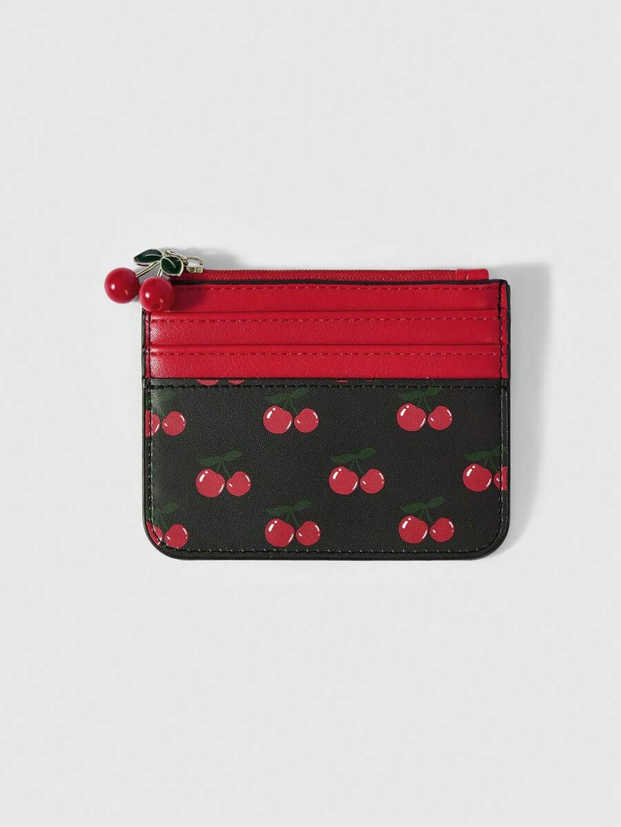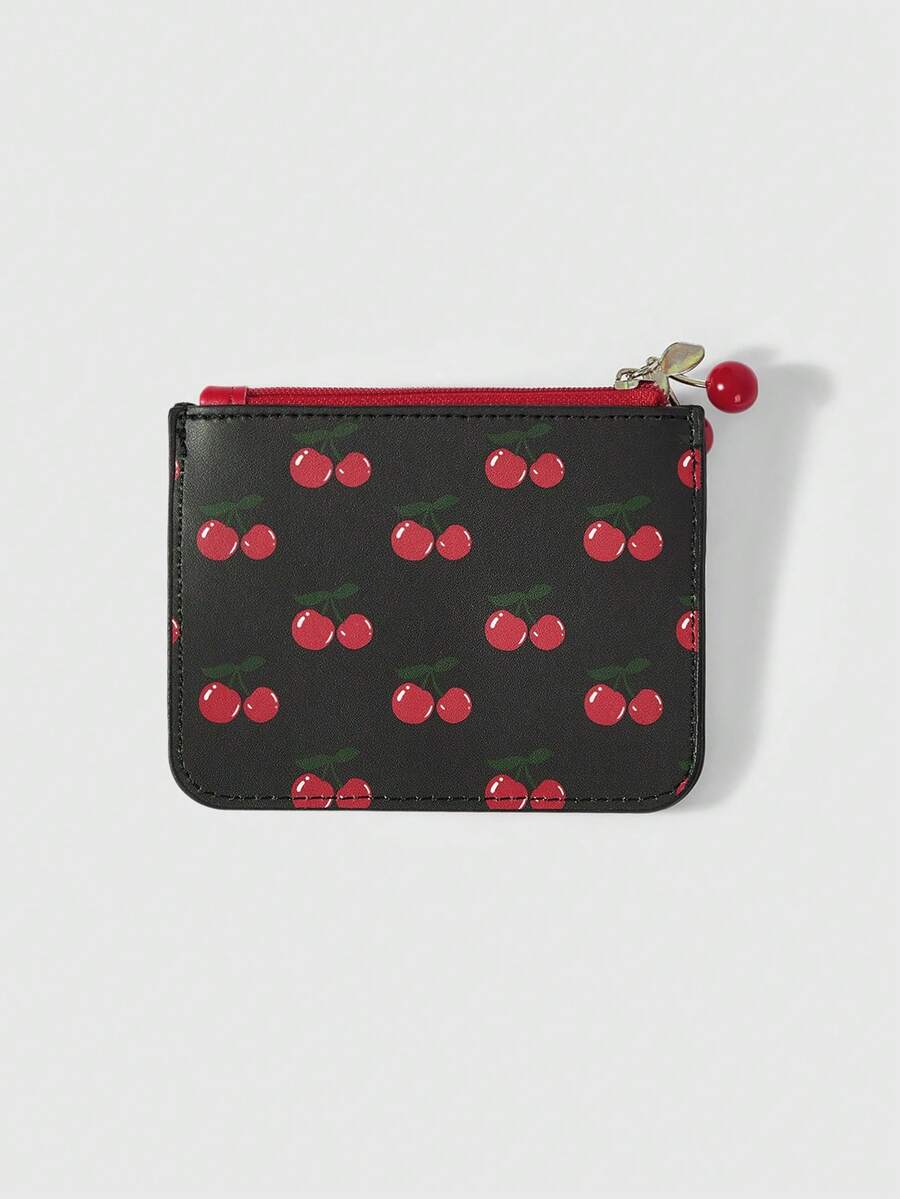 Kawaii محفظة بطاقات وحقيبة نقود مطبوعة بالكرز