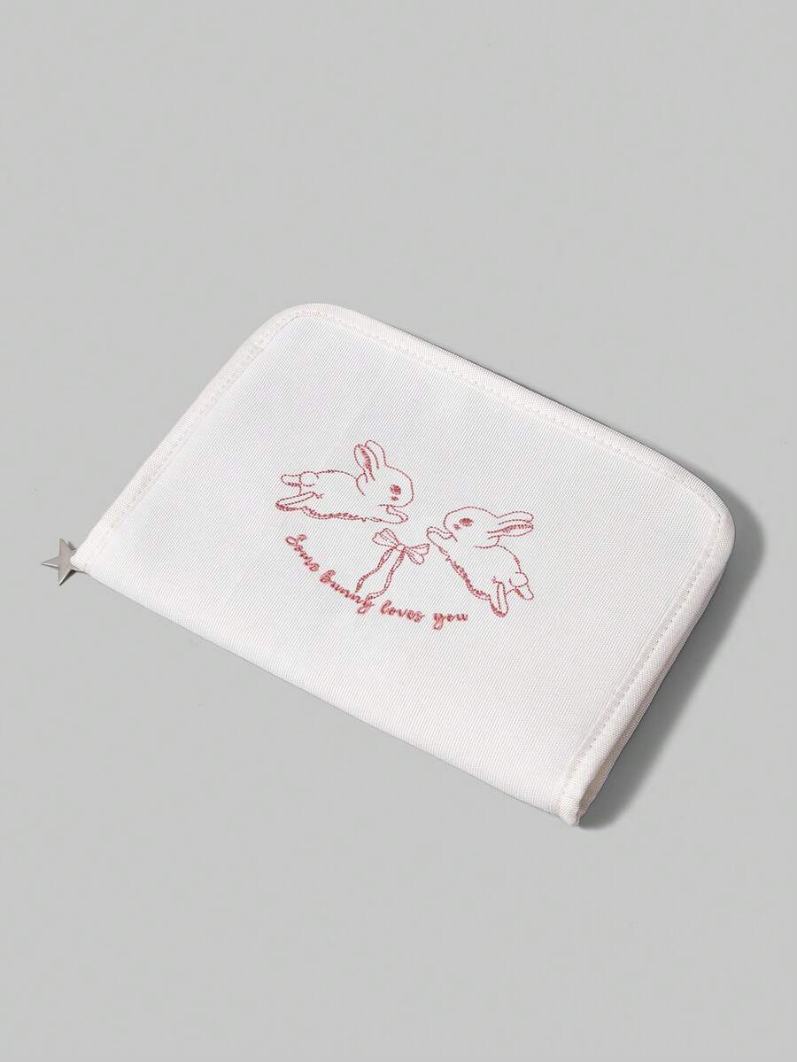 Kawaii حقيبة تخزين كبيرة السعة مطرزة بأرنب وردي بأسلوب أناقة الموضة، ذات أطياف بوهيمية
