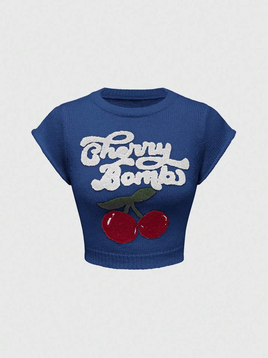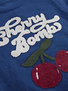 Kawaii كنزة صوفية نسائية بياقة عالية وأكمام فانوس مطرزة بالكرز بطراز كولومبي جميل وبريء