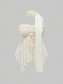 Kawaii توب أنبوبي أنيق وجذاب ذو تصميم بسيط للنساء مع وشاح مرفق