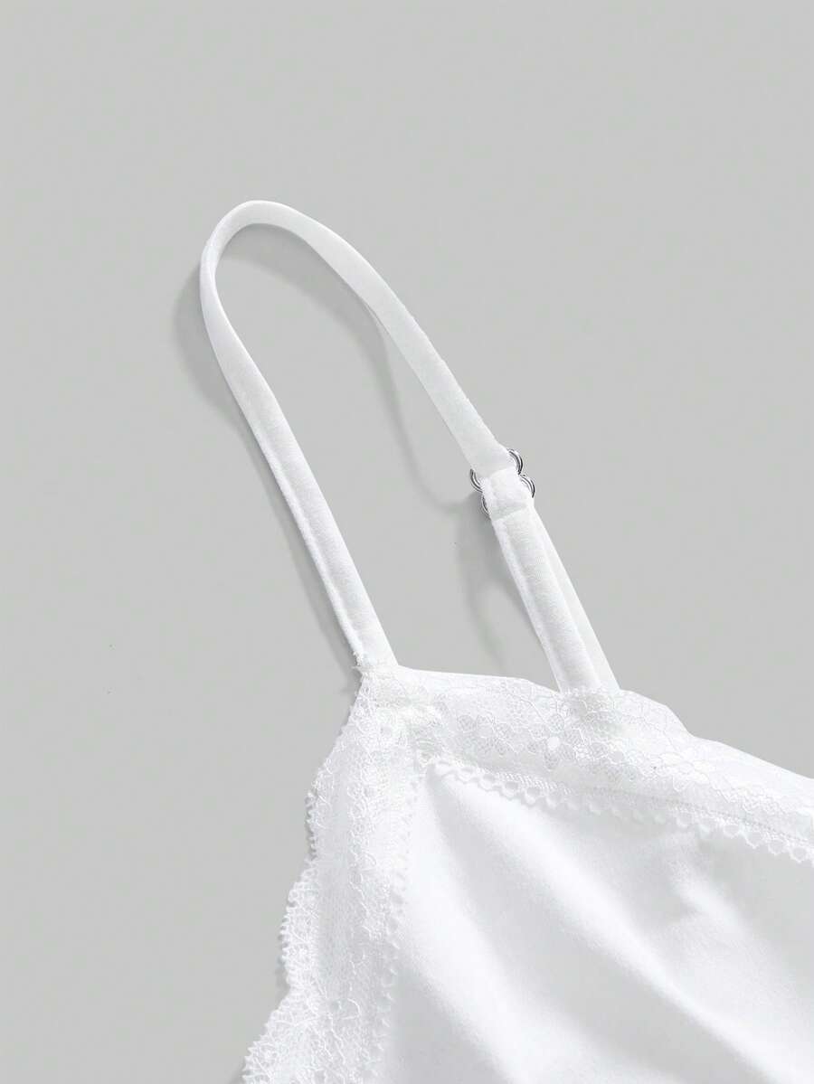Kawaii قميص داخلي للسيدات ذوات الأحجام الكبيرة مزين بشريط دانتيل أبيض وفيونكة جميلة