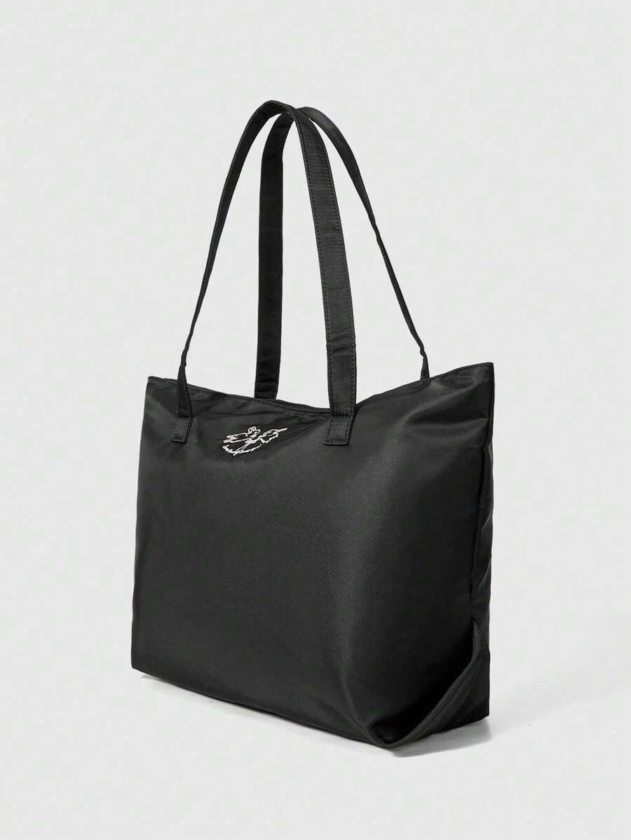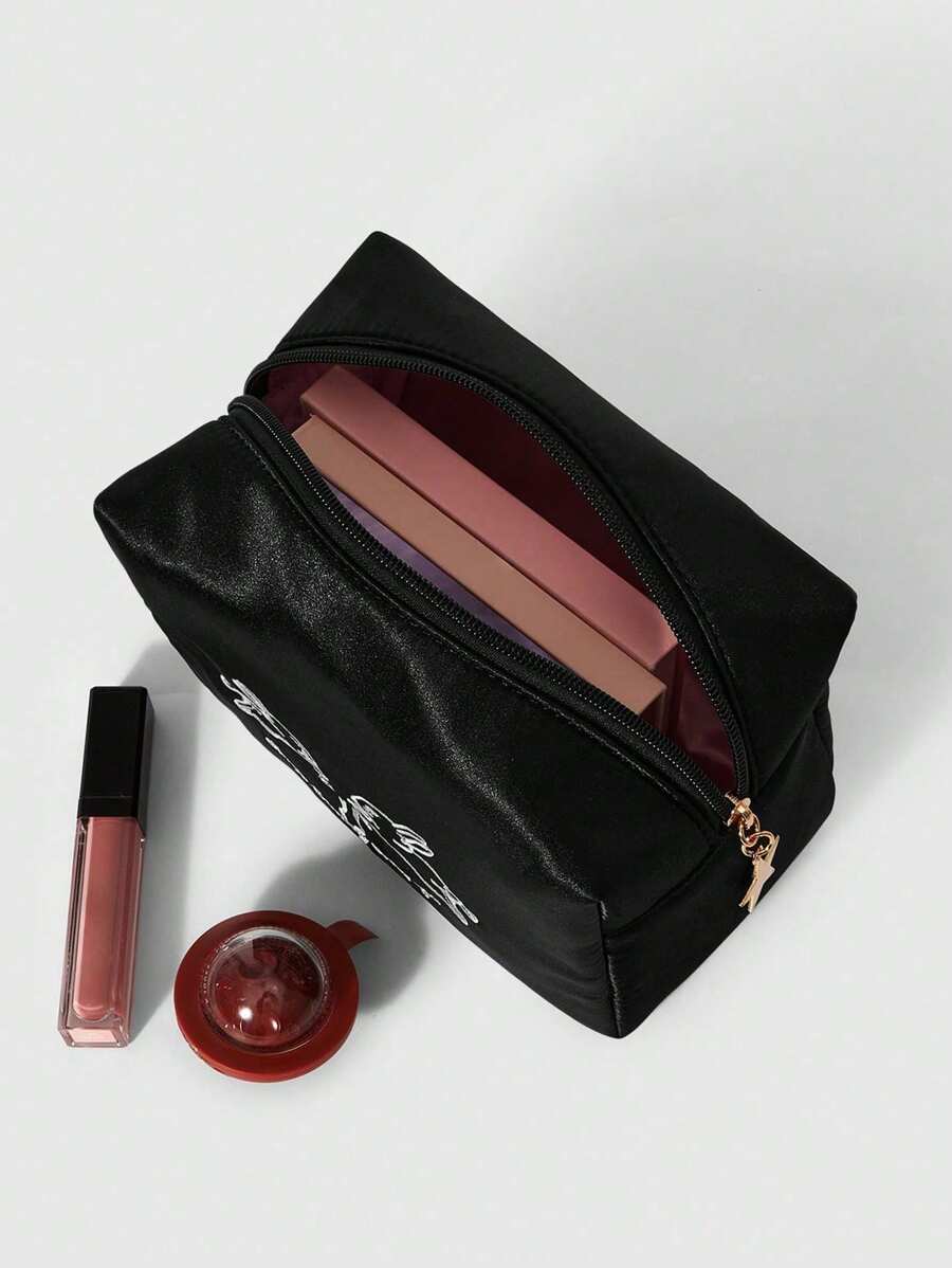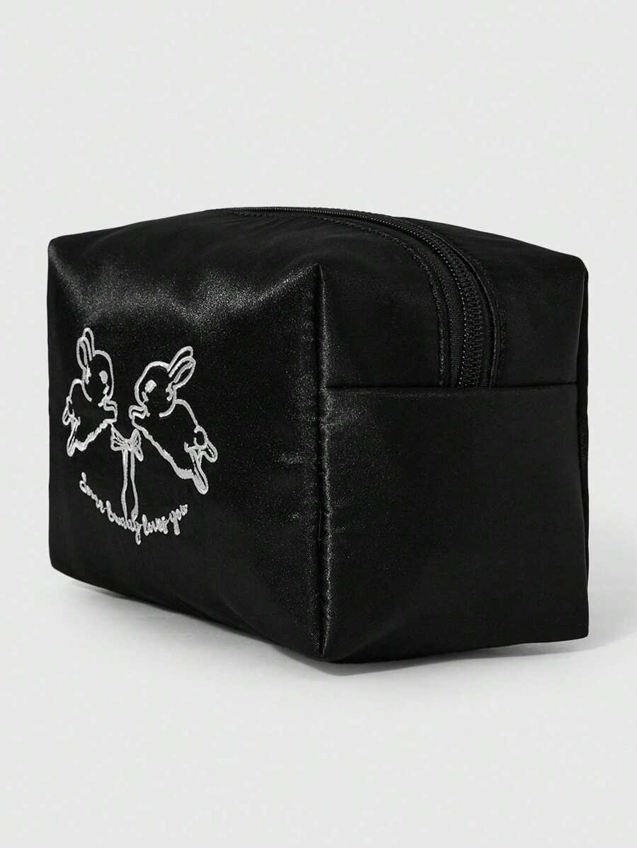 Kawaii طقم حقيبة كتف سعة كبيرة ذات تطريز أرنب+ حقيبة مستحضرات تجميل ، من قماش أكسفورد عصري، حقيبة تسوق ، هدية
