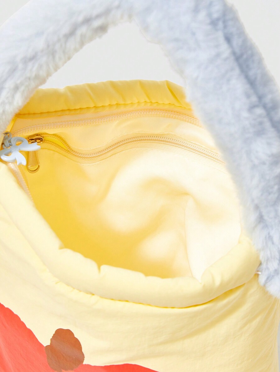 Kawaii حقيبة يد مجموعة باللونين مزينة بكرات فرو لينة