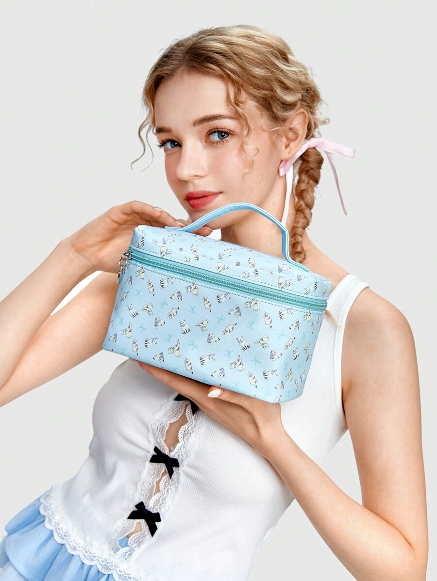 Kawaii حقيبة تجميل محمولة سعة كبيرة قابلة للطي بغطاء كات بلو أنيق ولطيف 330365