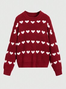 Kawaii كنزة بأكمام طويلة مطبوعة بنمط القلب