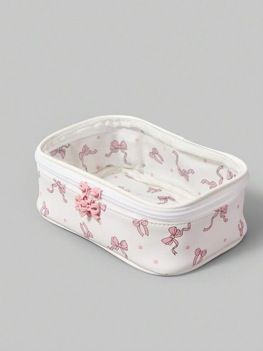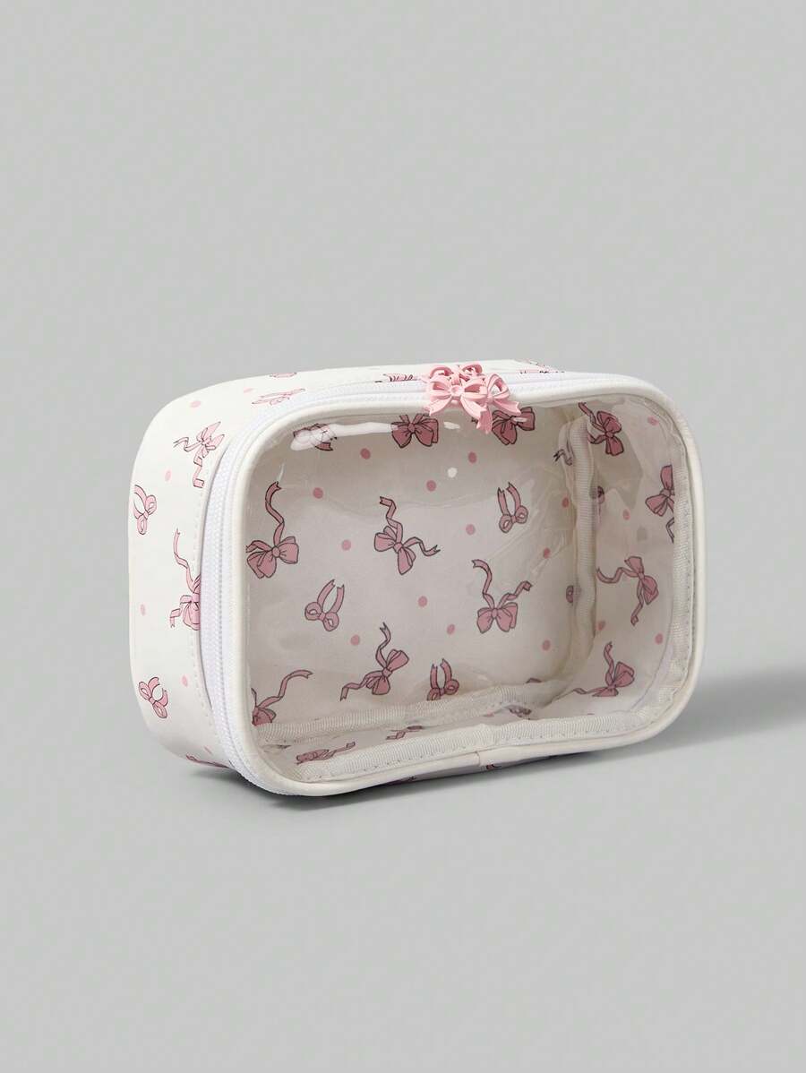 Kawaii حقيبة تخزين شفافة مطبوعة بفراشة لطيفة ذات لون أبيض كريمي، حقيبة مستحضرات تجميل مربعة محمولة للتنظيم، رمز المنتج 749146