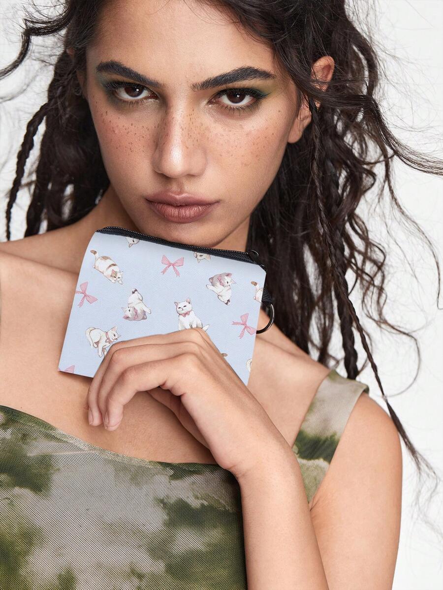 Kawaii محفظة عملات معدنية ميني لطيفة قط & عقدة الفراشة رسم للنساء الى اليومي