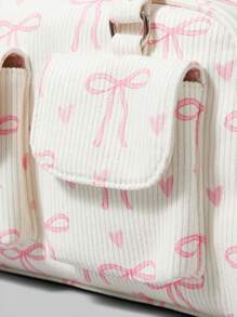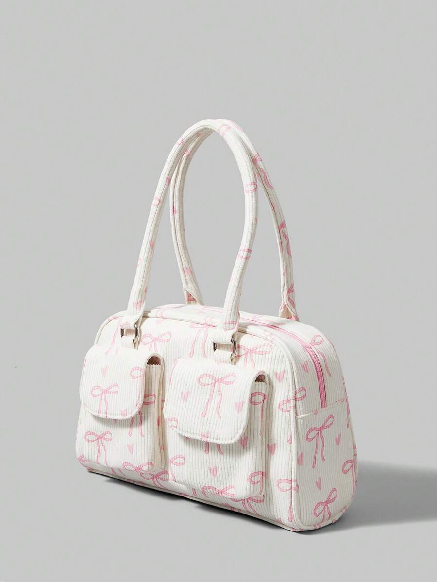 Kawaii حقيبة يد نسائية محمولة ذات طباعة الفراشة والقلوب الوردية