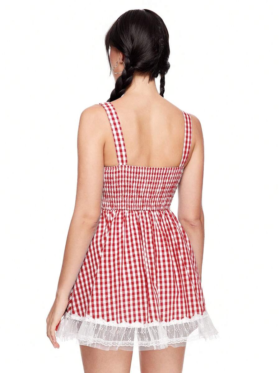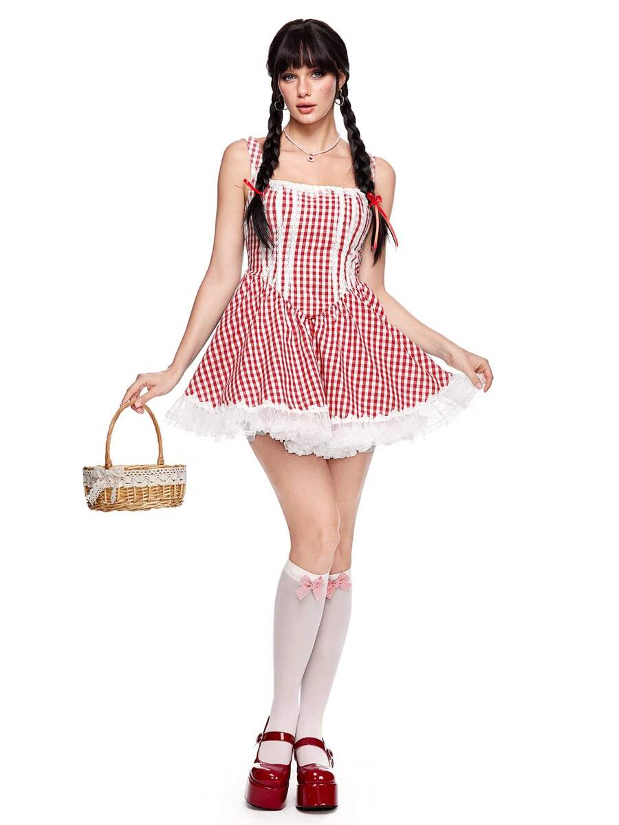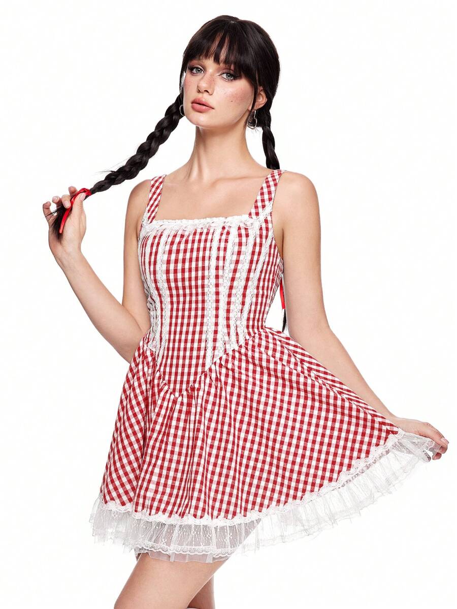 Kawaii فستان للنساء لعيد الحب بنمط المربعات
