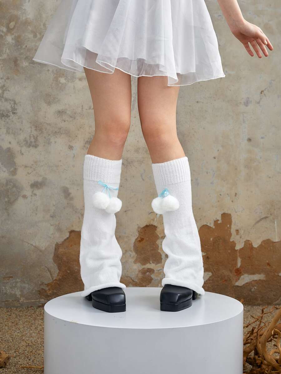 Kawaii مسخن ساق مزخرف بكرات مخملية