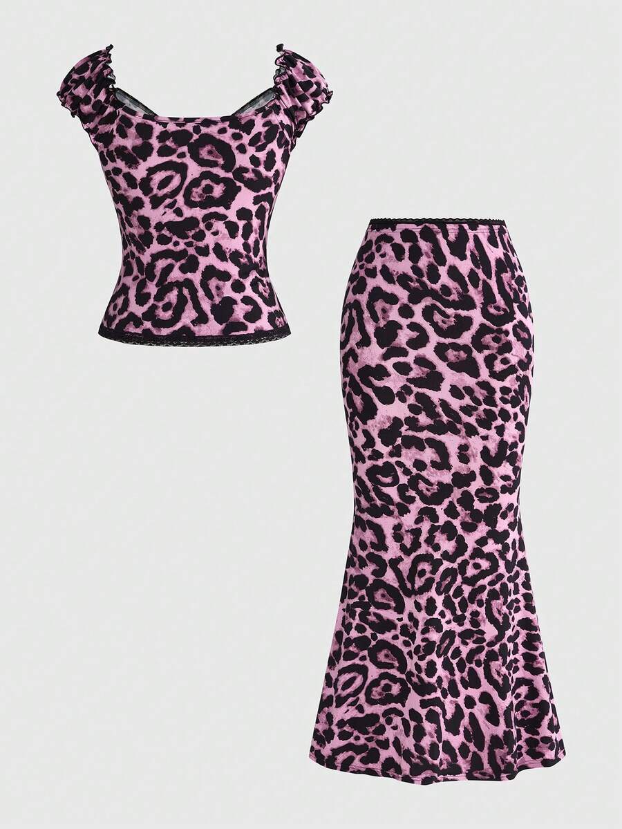Kawaii ملابس صيفية للنساء: طقم قطعتين مكون من ملابس علوية بياقة على شكل حرف V مزين بفيونكة وتصميم نقاط بولكا مع تطريز دانتيل، وتنورة ضيقة
