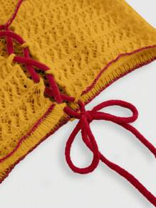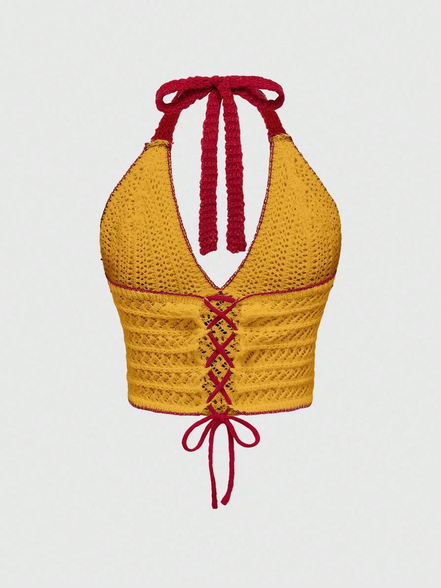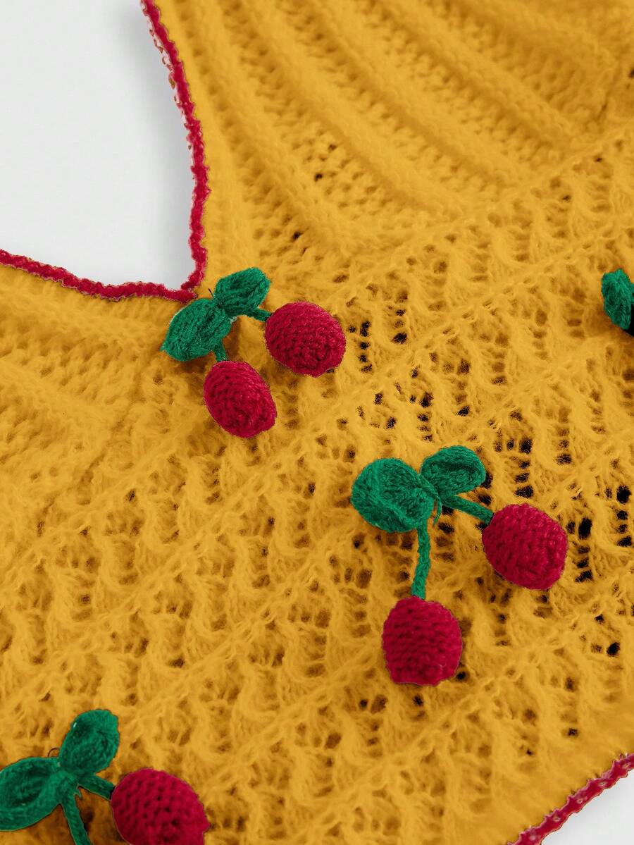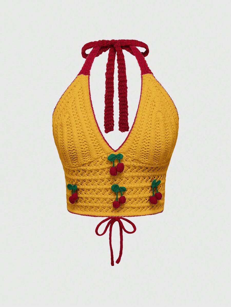 Kawaii ملابس علوية محبوك بتصميم هالتر رقبة مع كرز ثلاثي الأبعاد مناسب للنساء