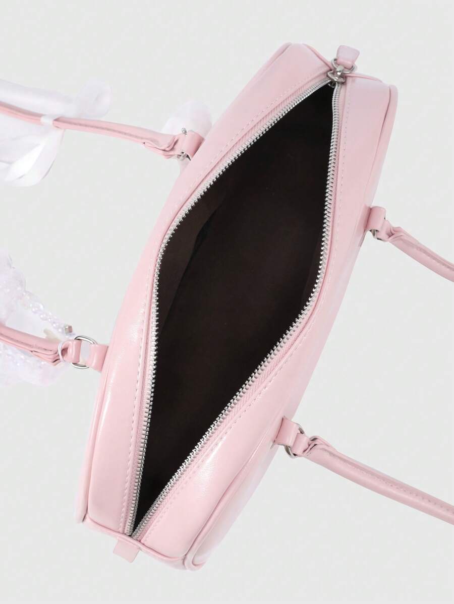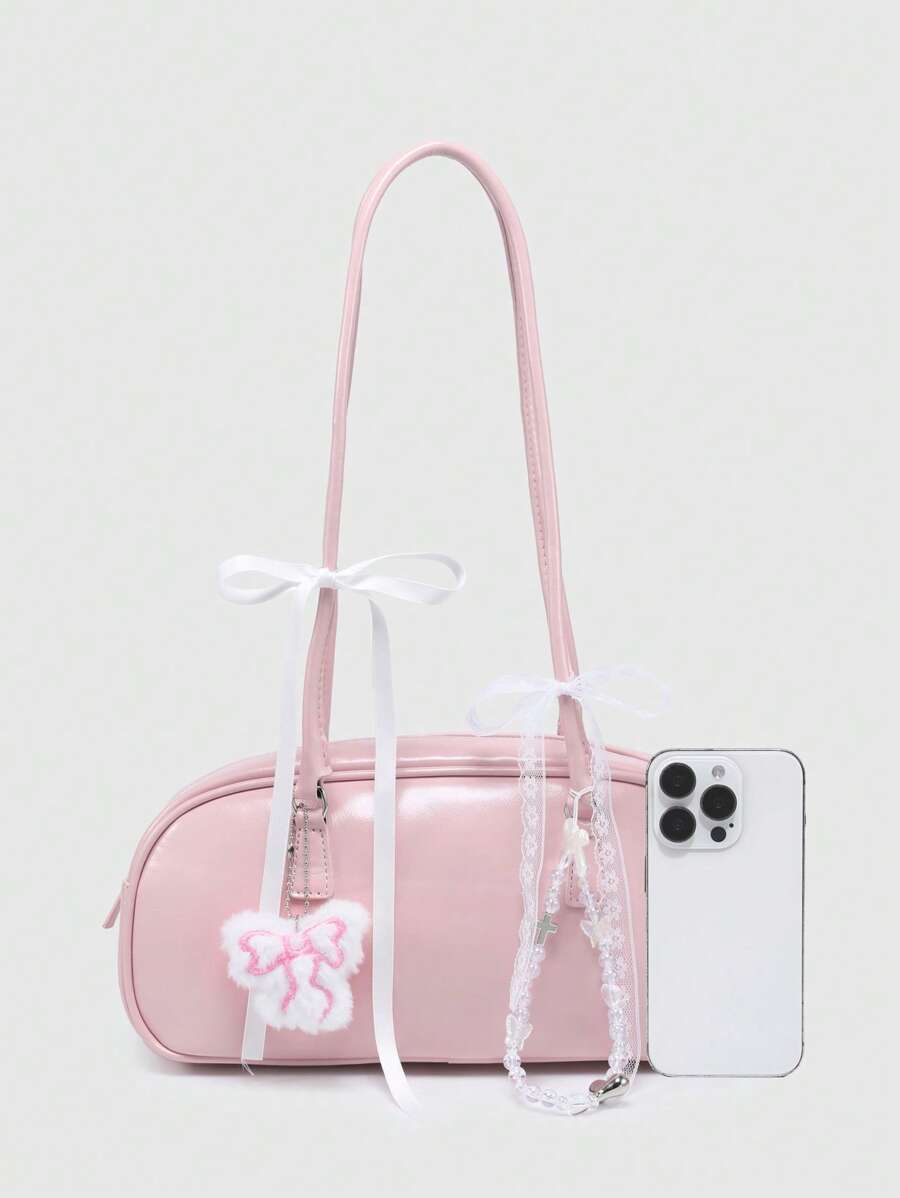 Kawaii حقيبة كتف/ تحت الذراع مع جيوب متعددة للنساء مزينة بارتباطة المربعات البسيطة والتفاح والقلوب رجعية، بتصميم جذاب
