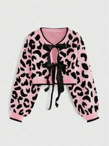 Kawaii ملابس علوية كاجوال أكمام طويلة مربوطة من الأمام بنمط النمر للنساء، للارتداء اليومي