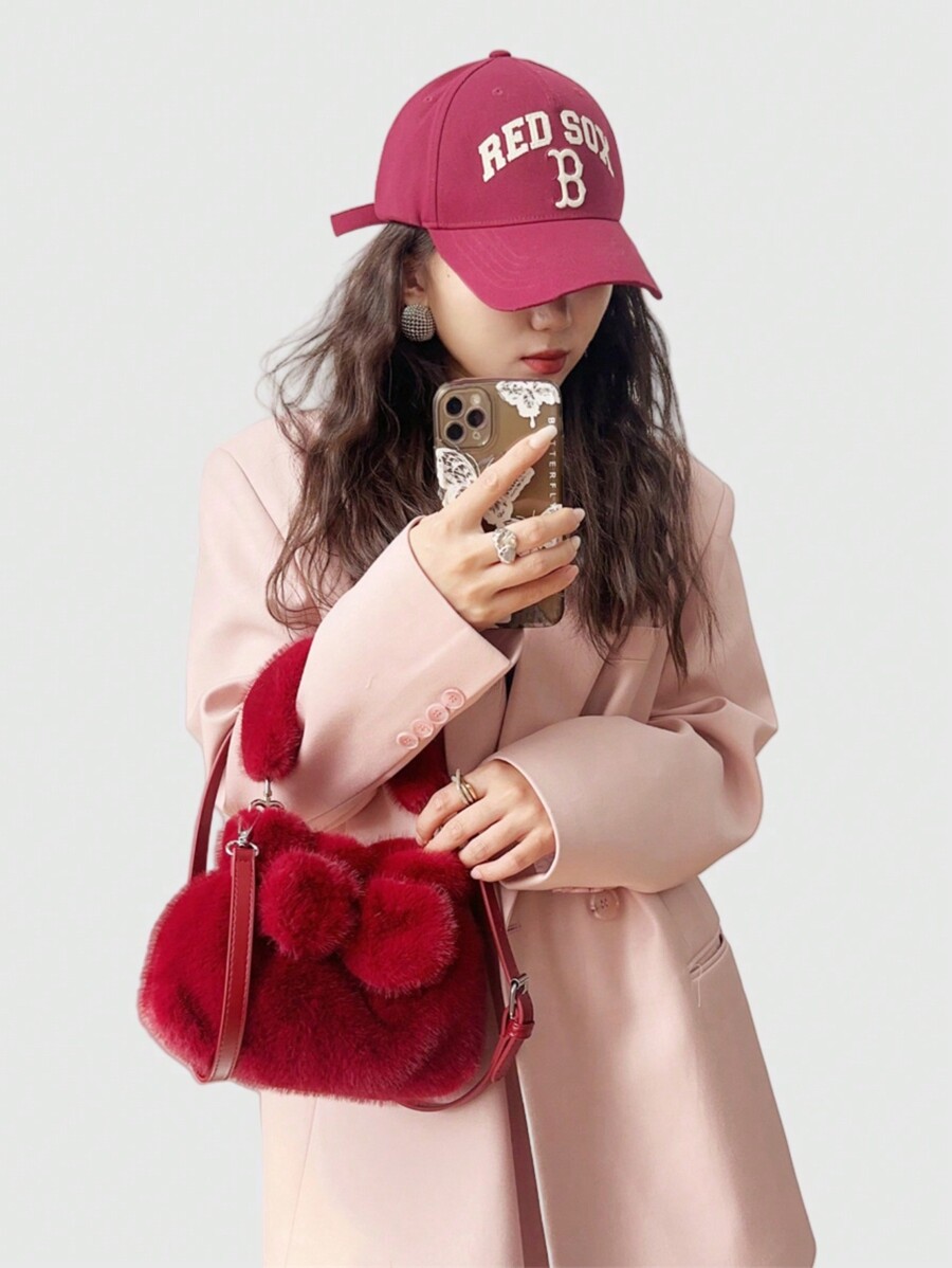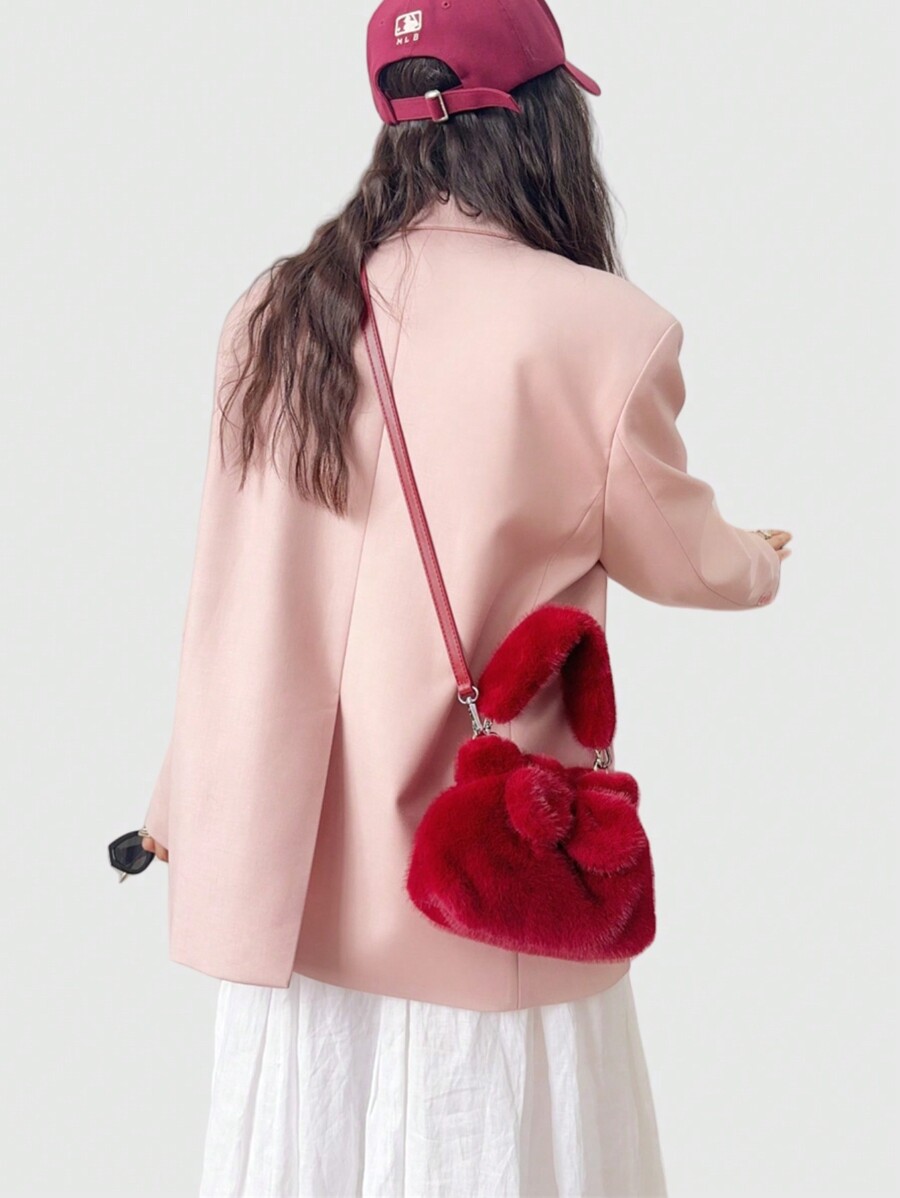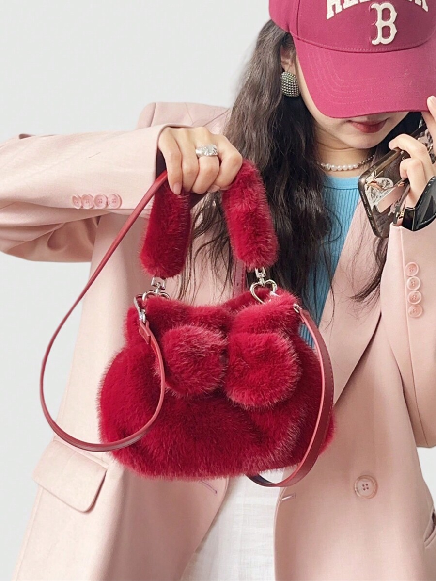 Kawaii حقيبة كتف نسائية عصرية ذات لون أحادي بشكل فراشة مبطن، شكل دلو أنيق وعادي للخريف والشتاء