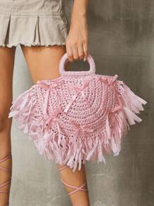 Kawaii حقيبة نسائية وردية بتصميم بسيط عملي متعدد الاستخدامات مع مقبض علوي مضفر