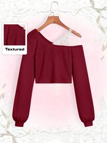 Kawaii تي شيرت تي شيرت أنثوي بأكمام طويلة وياقة متباينة بالدانتيل، للمدرسة