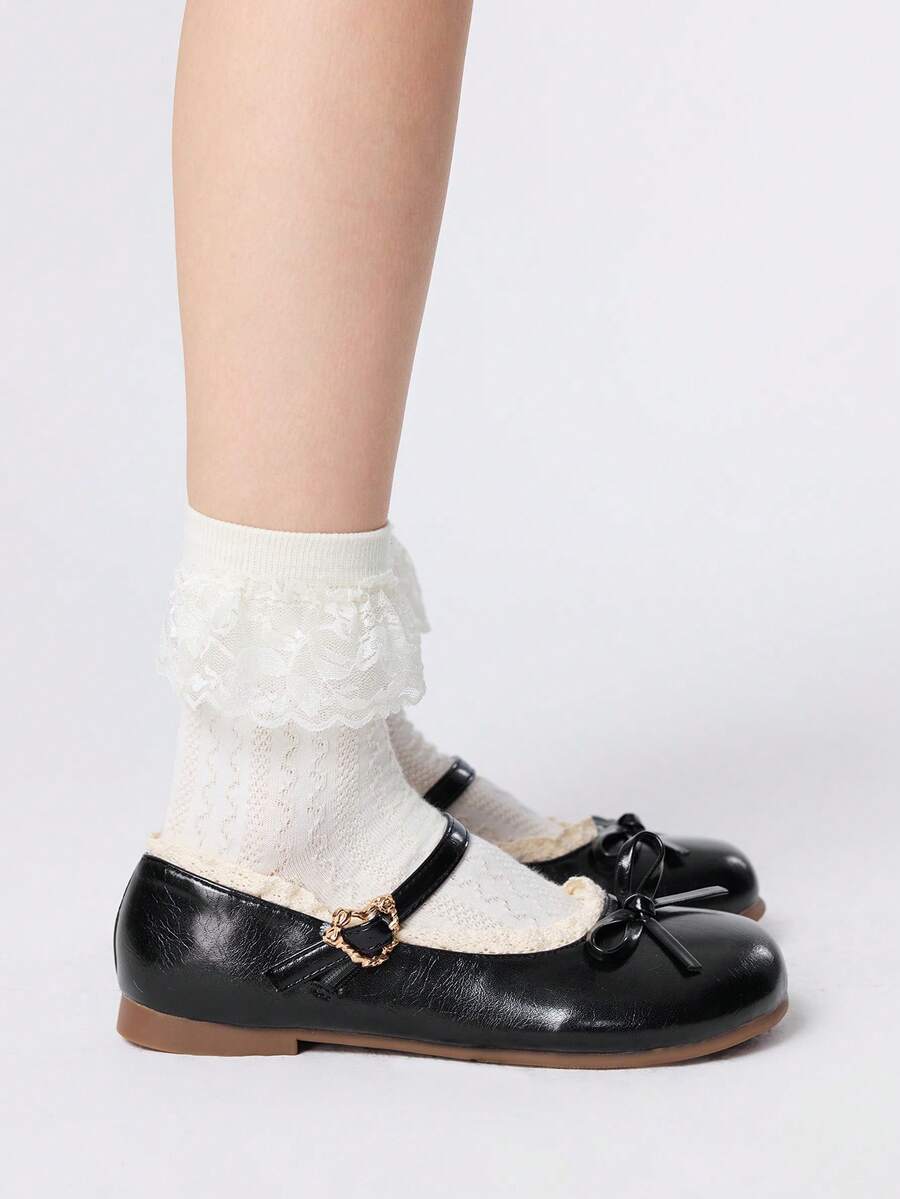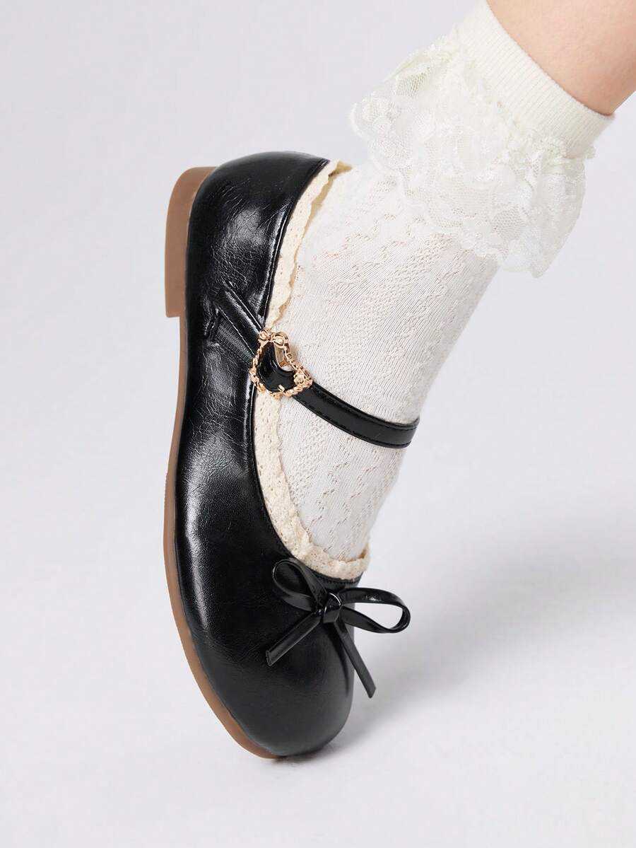 Kawaii أحذية ماري جين الأسود للنساء، لوفرز ذات أصابع مغلقة، شرائط وبيونات أحذية بالية من طراز لوليتا