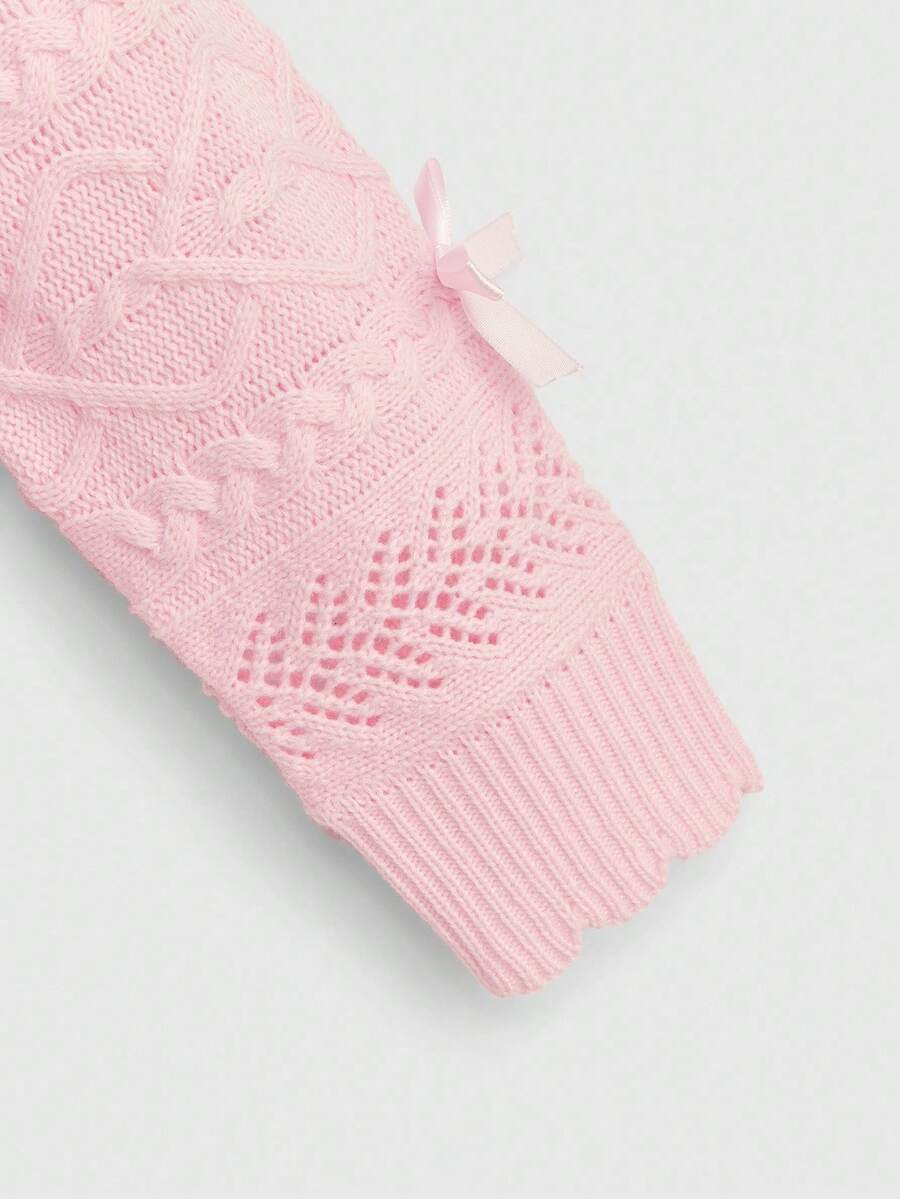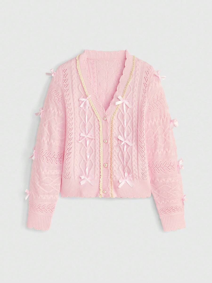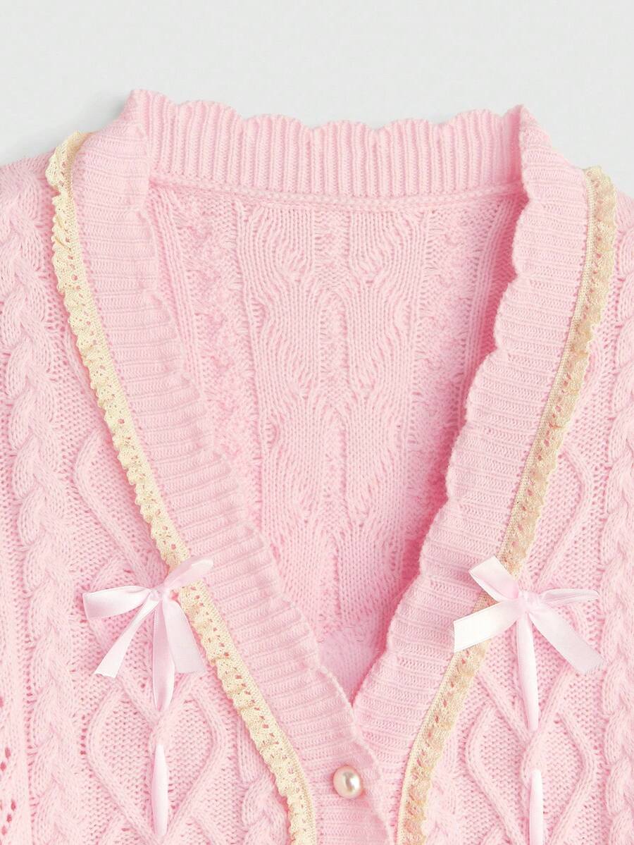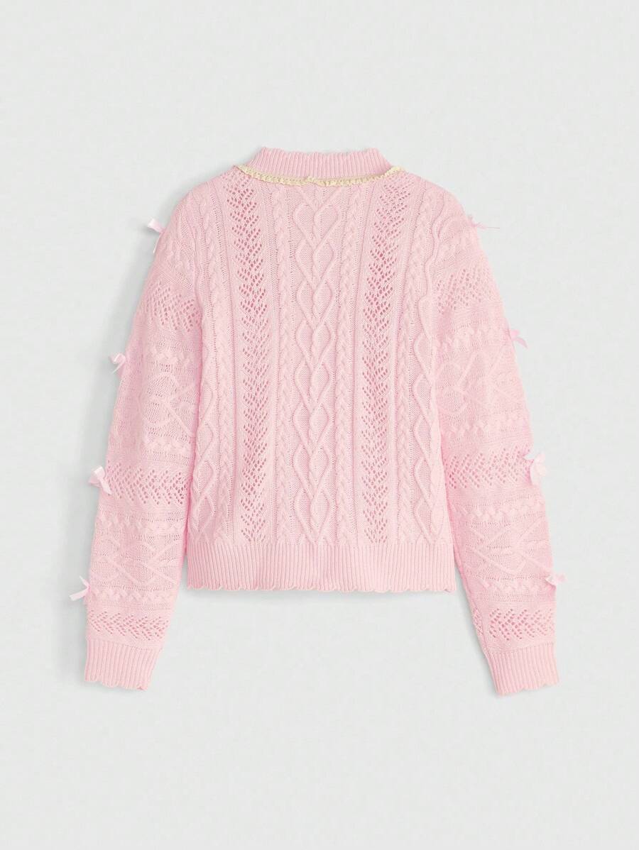 Kawaii كارديجان مُحبوك مع ربطة عنق وتطريز دانتيل على الرقبة على الطراز المدرسي الأنيق للنساء